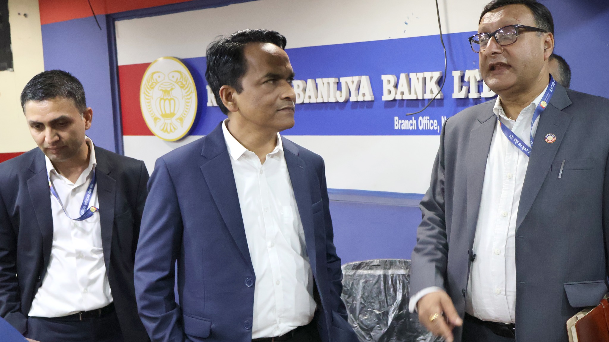 गभर्नर पौडेलबाट आन्दोलनमा लुटपाट भएको राष्ट्रिय वाणिज्य बैंकको नयाँ बानेश्वर शाखााको अवलोकन