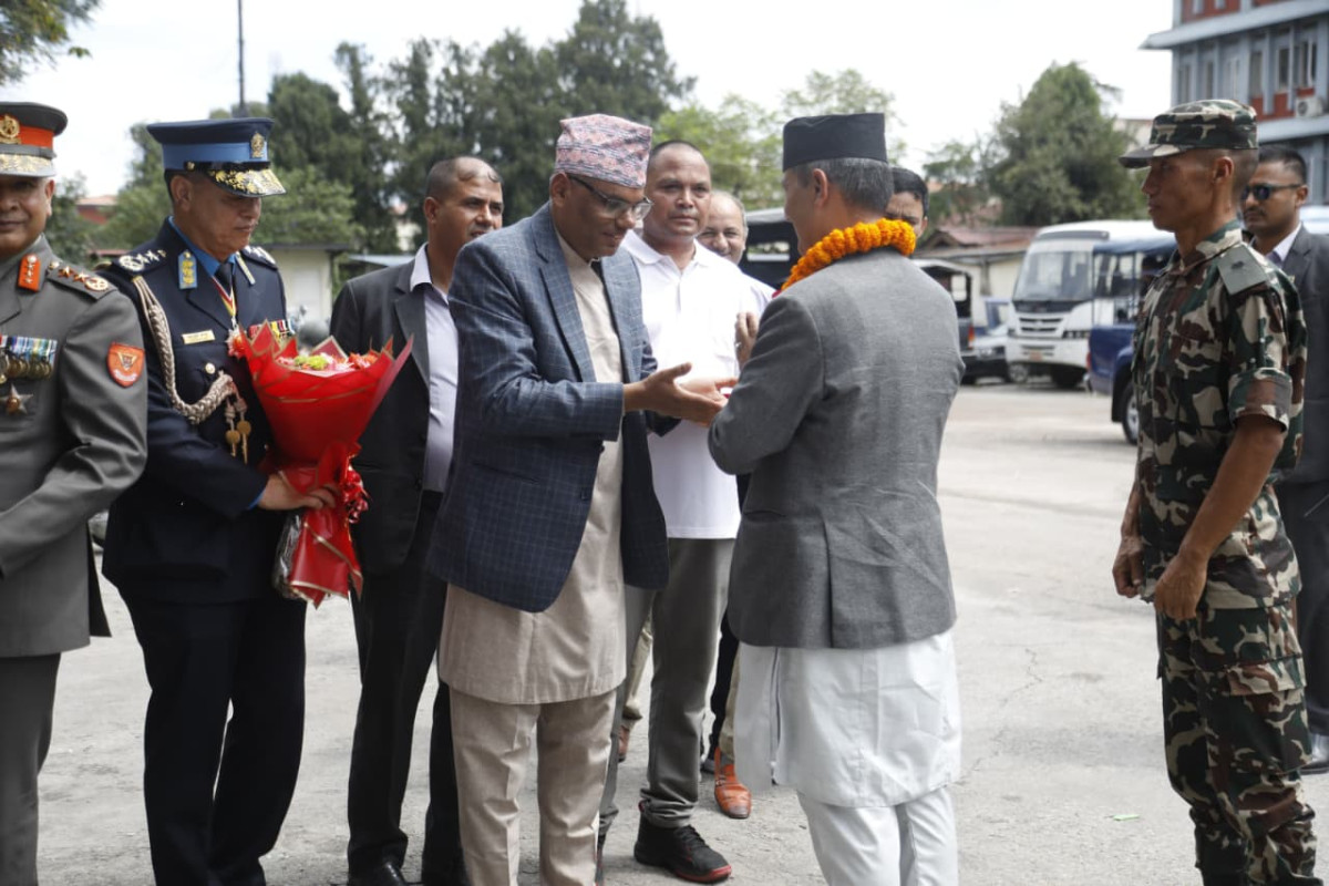 मन्त्री अर्याललाई मन्त्रालयमा गृह सचिव गोकर्णमणि दुवाडी, प्रहरी महानिरीक्षक चन्द्रकुबेर खापुङ, सशस्त्र प्रहरी महानिरीक्षक राजु अर्याल, निमित्त राष्ट्रिय अनुसन्धान निर्देशकलगायतले स्वागत गर्नुभएको थियो ।