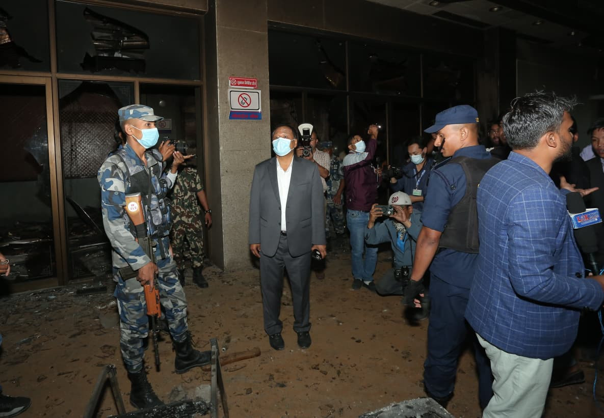 अर्थमन्त्री डा. रामेश्वर खनाल, ऊर्जामन्त्री कुलमान घिसिङ र गृहमन्त्री ओमप्रकाश अर्यालले केहीबेरअघि संसद भवन पुगेर निरीक्षण गरेका हुन् ।