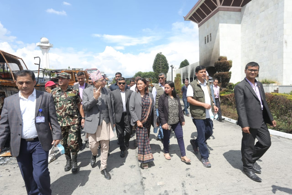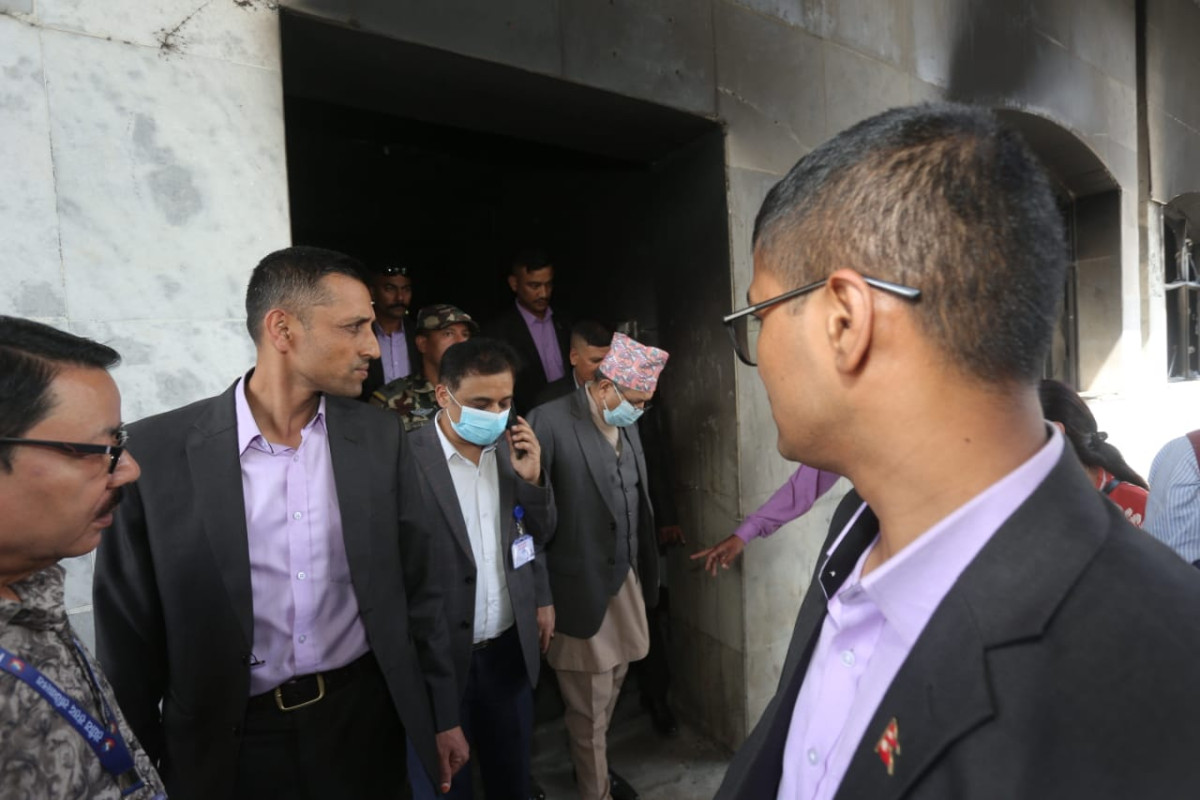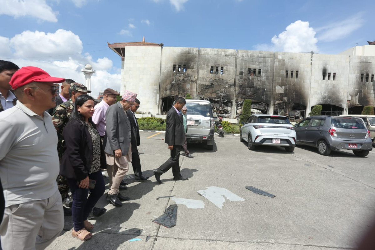 सभामुख घिमिरेद्वारा क्षतिग्रस्त संसद भवनको अवलोकन (तस्बिरहरु)