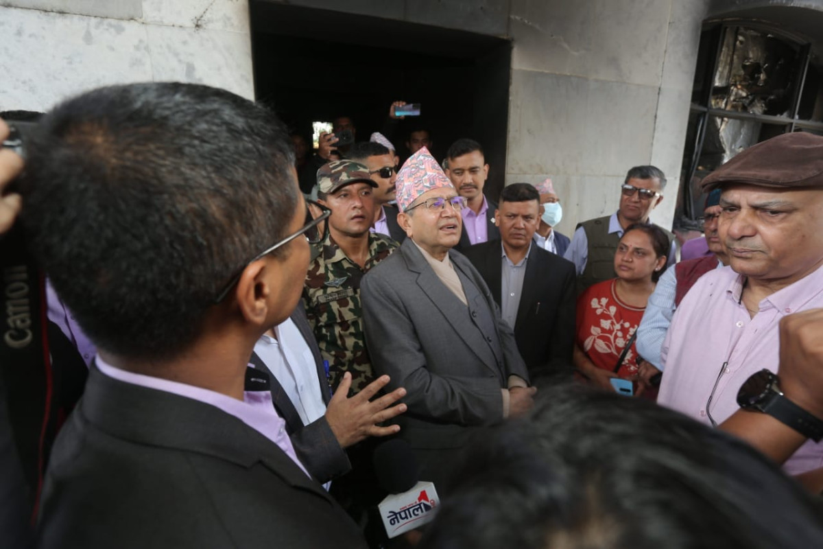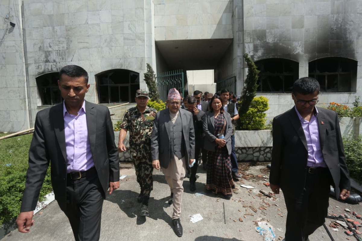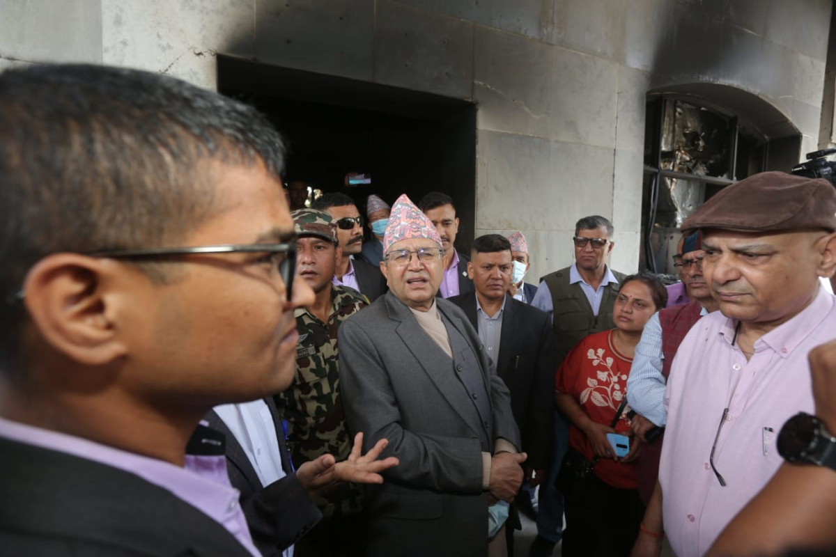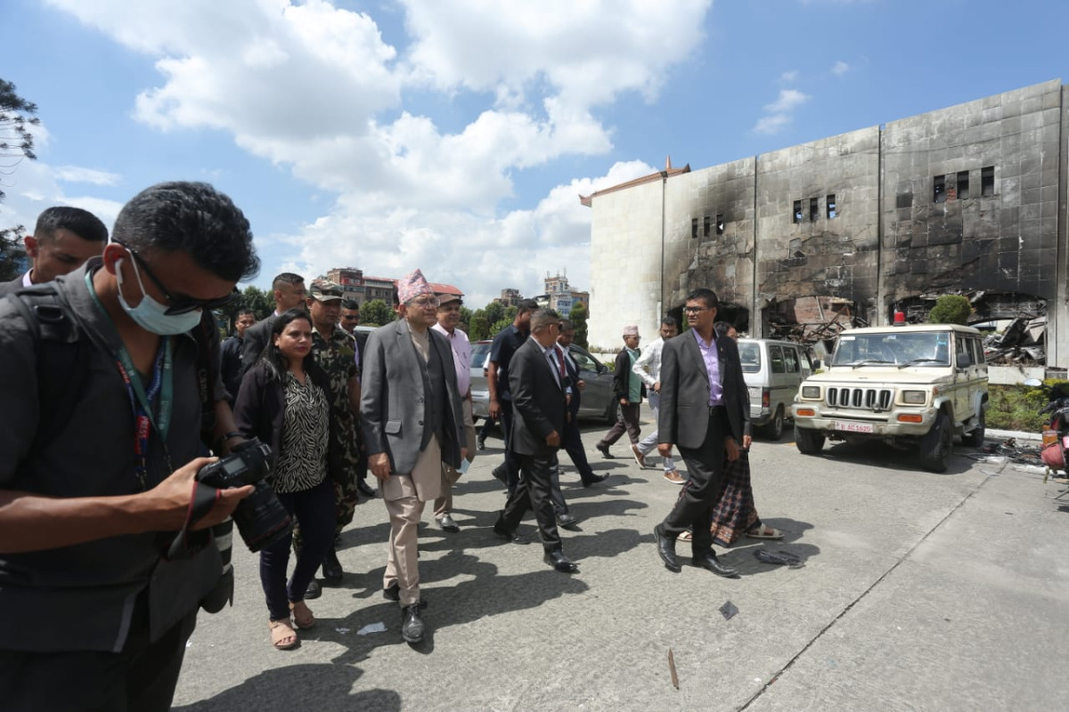 सभामुख घिमिरेद्वारा क्षतिग्रस्त संसद भवनको अवलोकन (तस्बिरहरु)