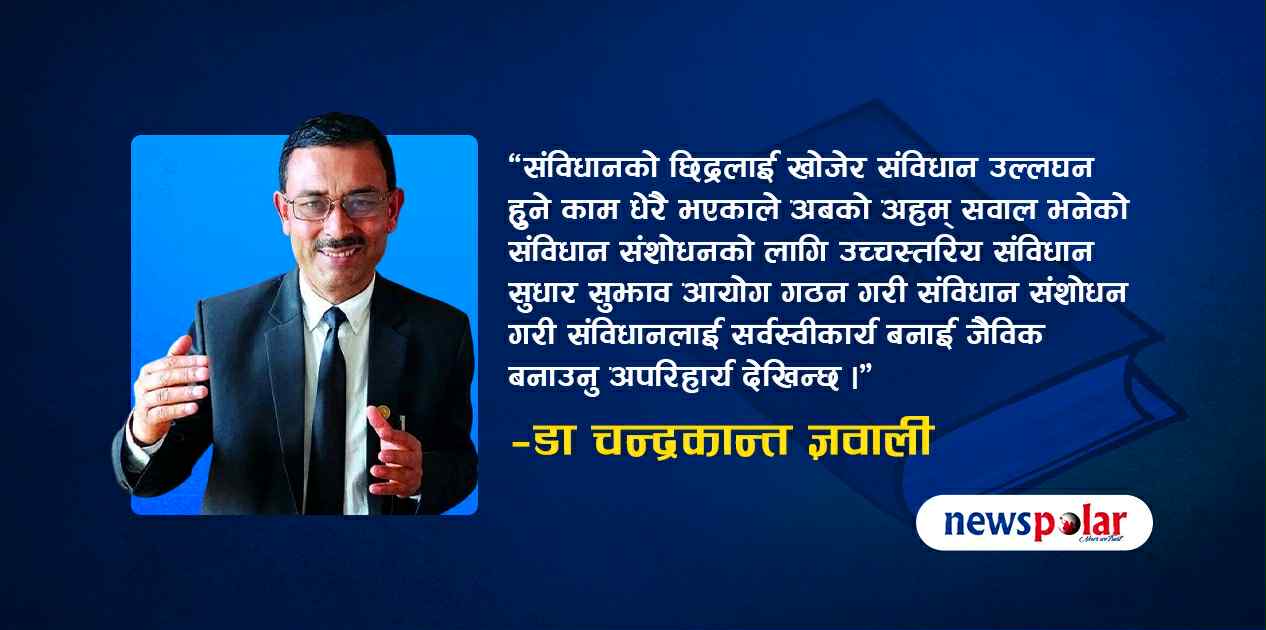 संविधानको छिद्रलाई खोजेर संविधान उल्लघन हुने काम धेरै भएकाले अबको अहम् सवाल भनेको संविधान संशोधनको लागि उच्चस्तरिय संविधान सुधार सुझाव आयोग गठन गरी संविधान संशोधन गरी संविधानलाई सर्वस्वीकार्य बनाई जैविक बनाउनु अपरिहार्य देखिन्छ । यसपटक भएको जेनजी आन्दोलनको भावनाअनुसार संविधानको संशोधन वा पुर्नलेखन भई मुलुक नयाँ ढङ्गबाट अगाडि बढ्दैछ ।रासस