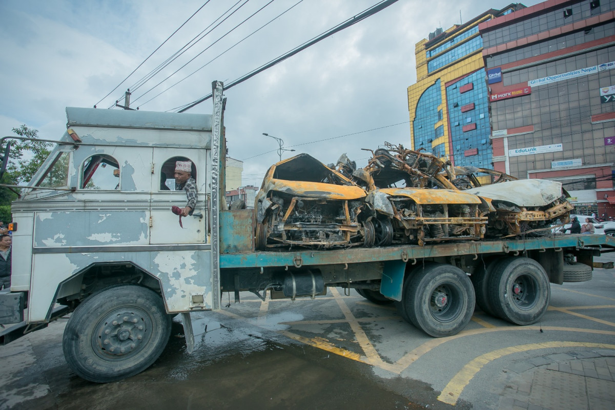 अन्तरिम सरकारले सिंहदरबारभित्र जेन जी आन्दोलनकारीले जलाएका सवारीसाधनहरुको व्यवस्थापन शुरु गरेको हो ।