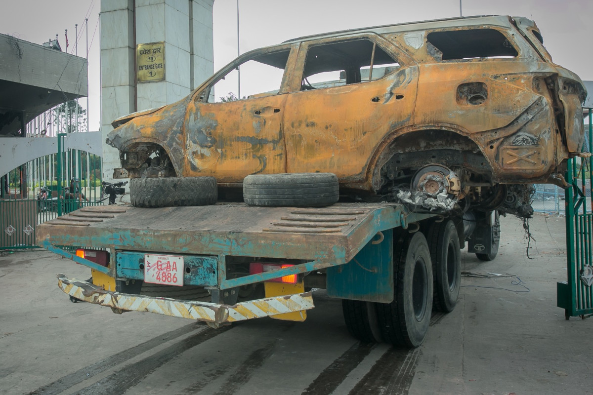 भदौ २३ र २४ गते भएको जेन जी आन्दोलनका क्रममा सवारीसाधनसहित सरकारी र निजी सम्पतीमाथि आन्दोलनकारीले आगजनी र तोडफोड गरेका थिए । आगजनी भएका सवारीसाधनहरु नयाँ बानेश्वरस्थित वीरेन्द्र अन्तर्राष्ट्रिय सम्मेलन केन्द्र परिसर, टेकु र कपनमा राखिएको छ ।