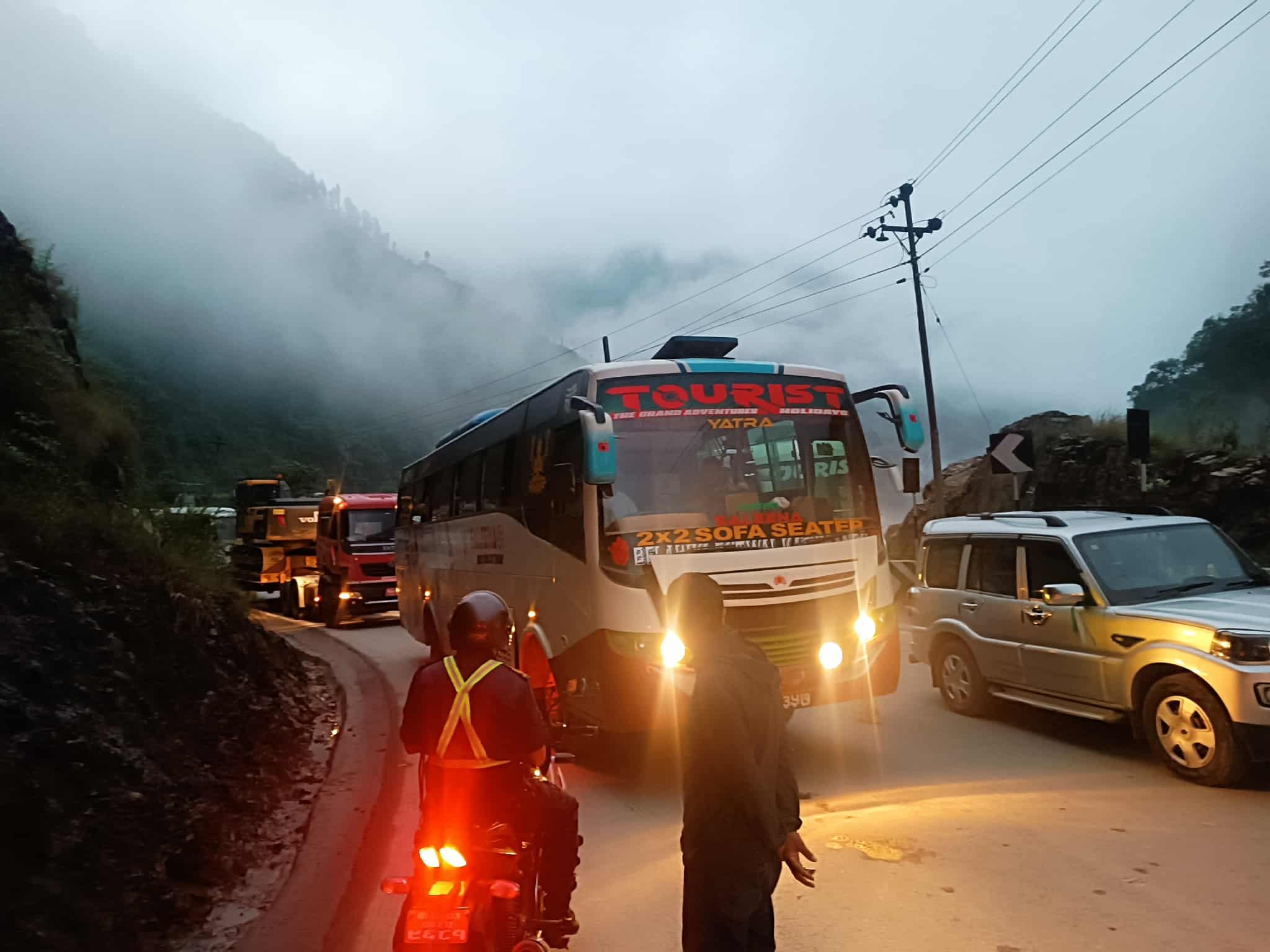 राजमार्गमा प्रहरीले माइकिङ गरेर यथास्थानमा सुरक्षित बस्न सवारी चालक र यात्रुहरूलाई आग्रह गरेको थियो ।