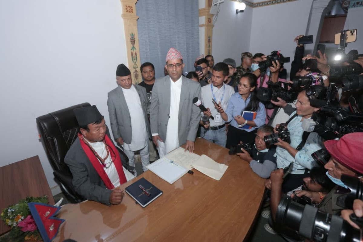 आज राष्ट्रपति कार्यालयमा पद तथा गोपनीयताको शपथ ग्रहण लगत्तै केशरमहलस्थित कार्यालय पुगी उहाँले पदभार ग्रहण गर्नुभएको हो ।