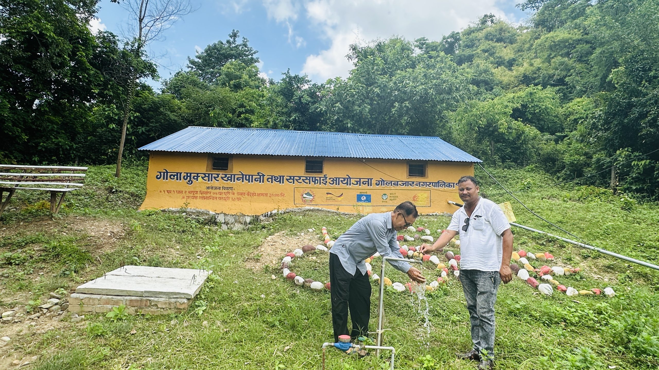सिरहा । कुनै समय आधा घण्टा हिँडेर खोला छेउको कुवा पुगेर पानी ल्याउनुपर्ने बाध्यता थियो गोलबजार नगरपालिका–१ र ३ गोला–मक्सुरका बासिन्दाको । तर, अहिले चुरेफेदका घर आँगनमै धारा छ त्यो चपुत्रासहित (धारामा ढलान गरी बनाइएको आकर्षक डिजाइन) । गोला मुक्सर खानेपानी आयोजना सम्पन्न भएसँगै यहाँका ६० घरधुरी प्रत्यक्ष लाभान्वित भएका छन् ।