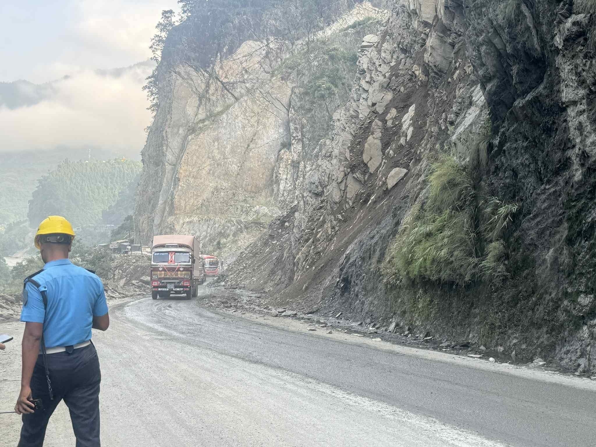 मङ्गलबार साँझ ७ः३० बजे इच्छाकामना गाउँपालिका–५ स्थित तुइन खोलामा लेदोसहितको पहिरो खस्दा सडक दुइतर्फी अवरुद्ध भएको थियो । पहिरो पन्छाएसँगै ८ः४० बजेदेखि सडक दुइतर्फी सञ्चालनमा आएको थियो ।