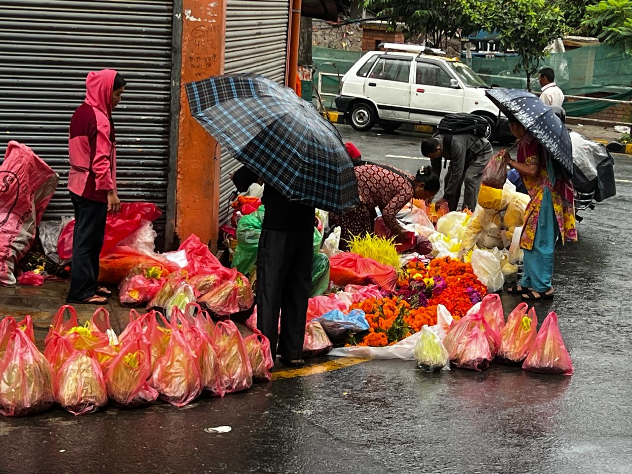 दशैकाे मुख्य दिन आज बिहानैदेखि जमरा ल्याउने, आ–आफ्ना काम गर्न मानिसहरु छाता ओढेरै भए पनि गरिरहेका छन् ।