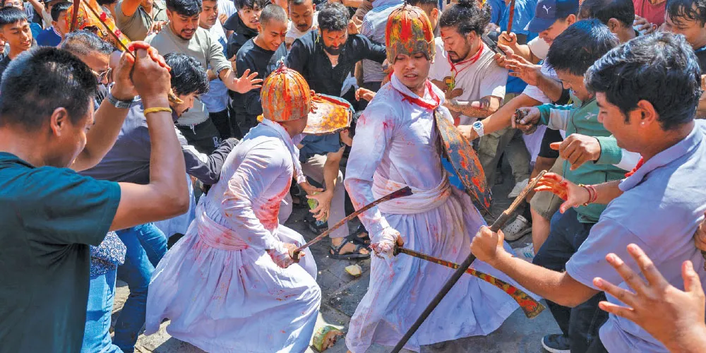 भादगाउँ । बडादसैँको ११ औँ दिन पापाङ्कुशा एकादशीको अवसरमा शुक्रबार मध्यपुर थिमिमा मल्लकालीन युद्धको झल्को दिने गरी ‘खाँ पिहाँवईगु’ (खाँ निस्कने) जात्रा सम्पन्न भएको छ ।