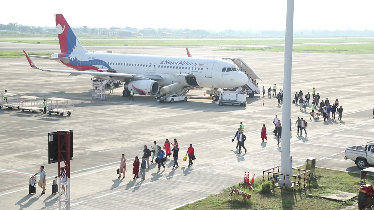 गौतम बुद्ध अन्तरराष्ट्रिय विमानस्थल नागरिक उड्डयन कार्यालयका प्रवक्ता श्याम किशोर शाहले दिउँसो ३:४५ बजे काठमाडौँबाट भैरहवामा अवतरण गरेको नेपाल एयरलाइन्सको न्यारो बडी ए-३२० विमानले ७६ जना यात्रु लिएर आएको बताउनुभयो। सोही विमानले १५७ जना यात्रु बोकेर राति काठमाडौँ फर्किएको छ।