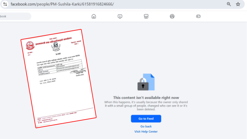 प्रधानमन्त्री कार्कीको फेसबुक अकाउन्ट अचानक गायब