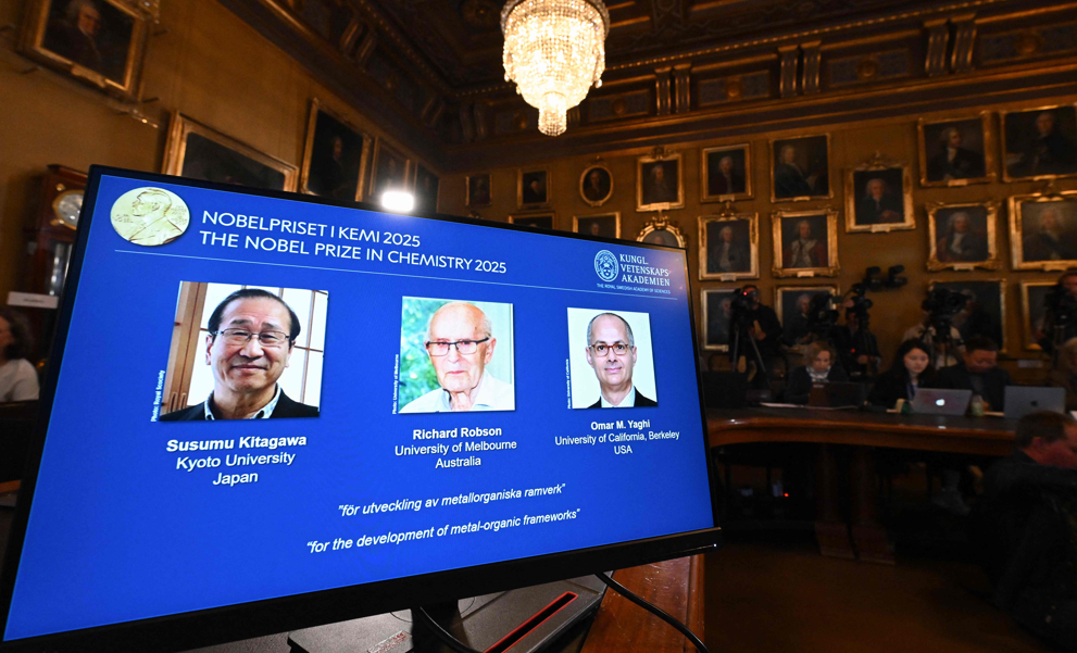 पुरस्कार समितिका अनुसार ’मेटल–अग्र्यानिक फ्रेमवर्क’ (एमओएफ) को विकास गरेका जापानका सुसुमु कितागावा, अस्ट्रेलियाका रिचर्ड रब्सन र अमेरिकाका ओमर यागीलाई सन् २०२५ को नोबेल पुरस्कार दिन लागिएको हो।