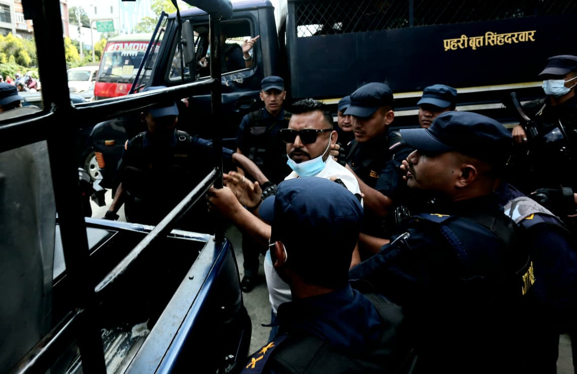 आन्दोलन गर्न माईतीघर पुगेका निकोलस भुसालसहित तीन जना पक्राउ