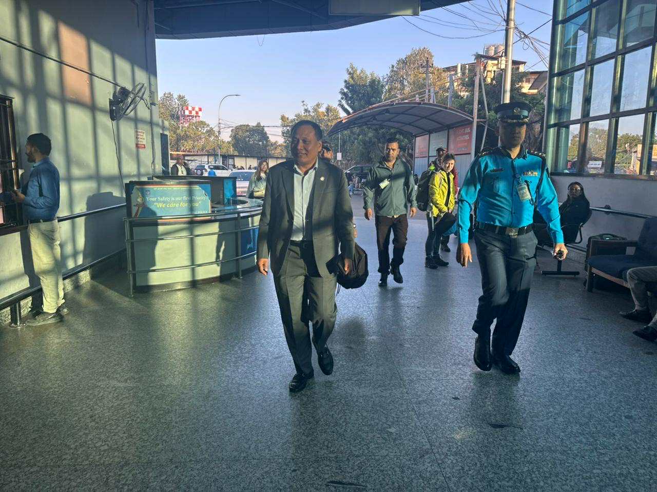 मन्त्री घिसिङ अहिले त्रिभुवन अन्तर्राष्ट्रिय विमानस्थलमा बिमानको पर्खाइमा छन् ।