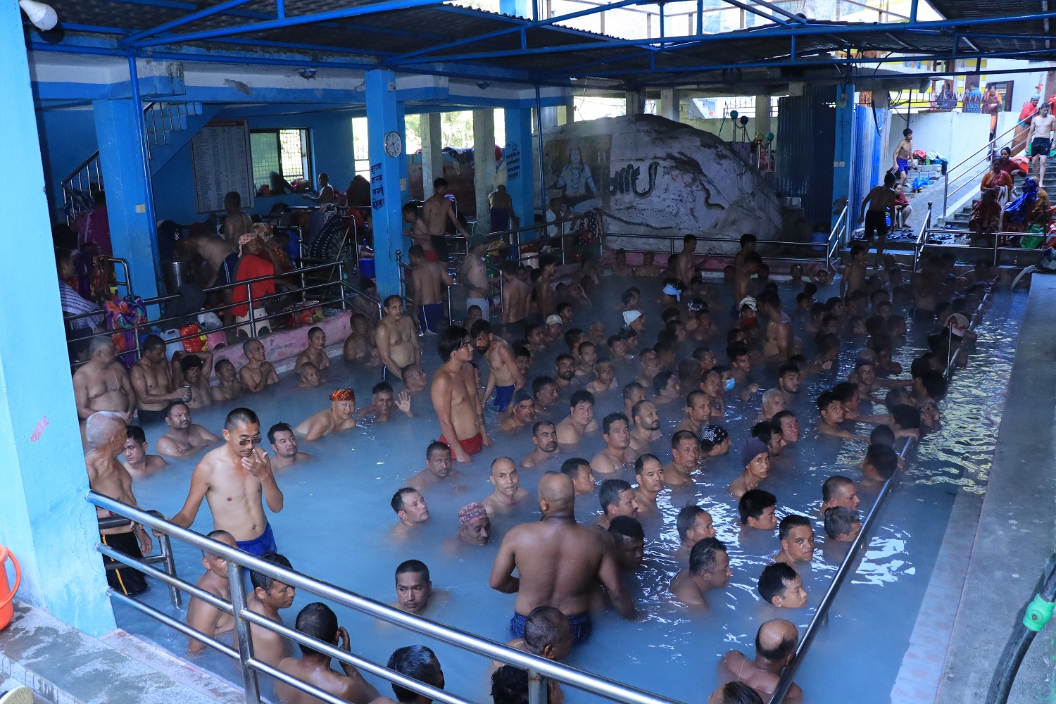 तातोपानी कुण्ड व्यवस्थापन समितिका सचिव अम्मरबहादुर खत्रीले स्नान गर्न आउनेहरुको चाप बढेकाले बिहान साढे ५ः०० देखि साँझ ५ः०० बजेसम्म महिला, पुरुषको छवटा समूह बनाएर स्नानको व्यवस्था मिलाइएको जानकारी दिनुभयो । “सात सय महिला र चारदेखि पाँच सय पुरुष तातोपानी स्नानका लागि आएका छन्”, उहाँले भन्नुभयो, “महिला र पुरुषको छुट्टाछुट्टै समूह बनाएर दुई/दुई घण्टाका दरले स्नान गर्ने व्यवस्था मिलाइएको छ ।”