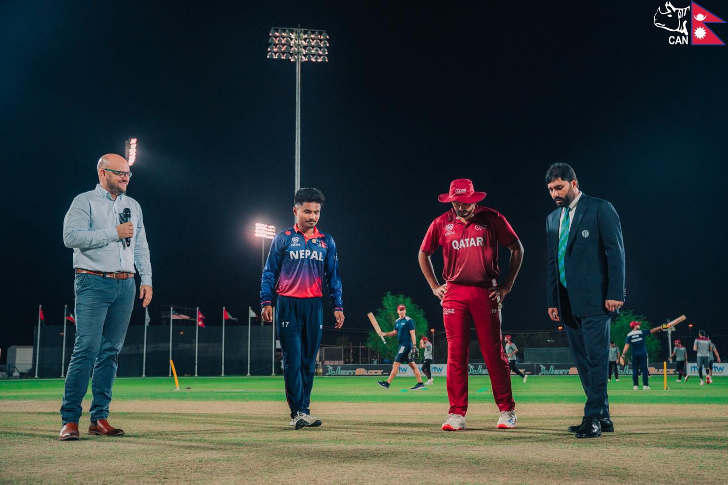 ओमानको अल अमिरतस्थित ओमान क्रिकेट एकेडेमी टर्फ–१ मा भर्खरै भएको ट्समा कतारका कप्तान मिर्जा मोहम्मद बैगले टस जितेर नेपाललाई पहिला ब्याटिङको निम्तो दिएका हुन् ।