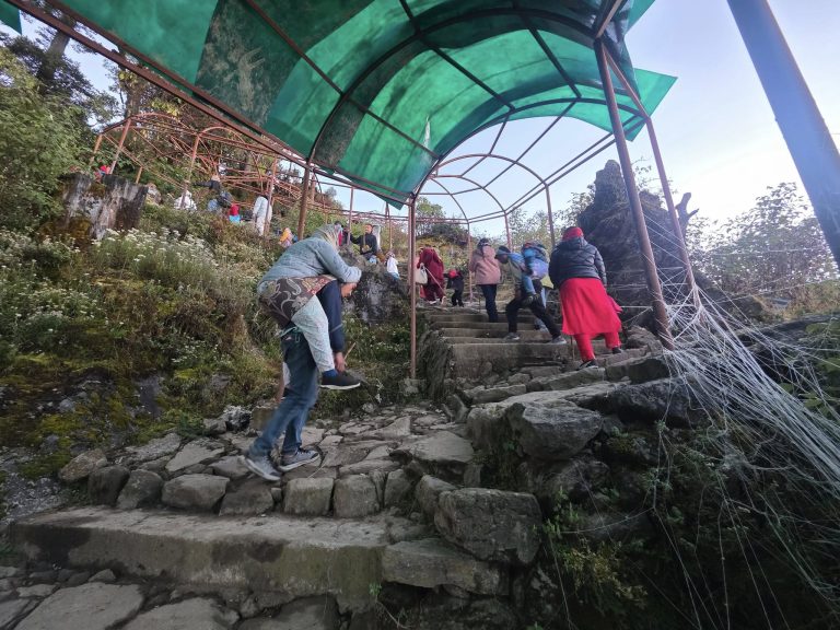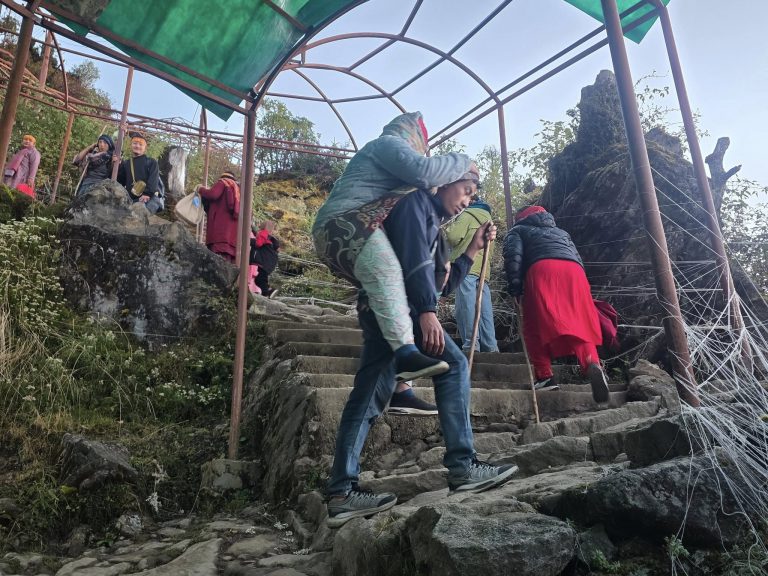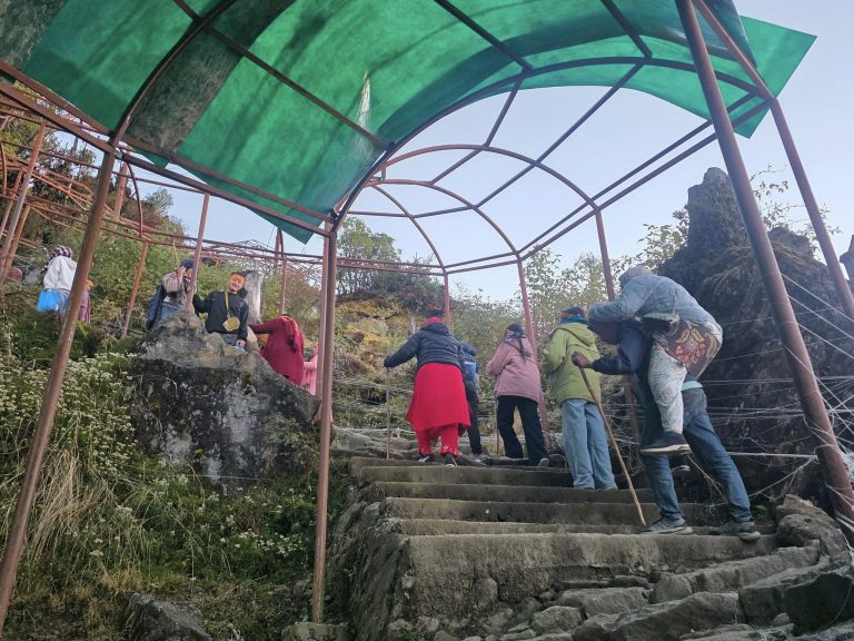पाथीभरा पर्वतको शिखरनजिक अवस्थित तीर्थस्थलमा मानिसहरु हिँडेरै पुगिरहेका छन् । कतिपय भक्तजन बोकाएरै भए पनि दर्शन गर्न पुगिरहेका छन् ।