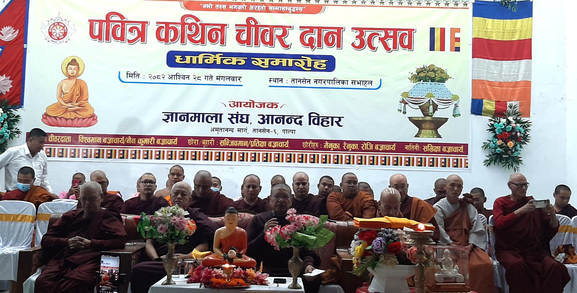 पाल्पा। यहाँको तानसेनमा बौद्ध परम्पराअनुसार गरिने पवित्र ‘कथिन चीवर दान’ उत्सव सम्पन्न भएको छ ।