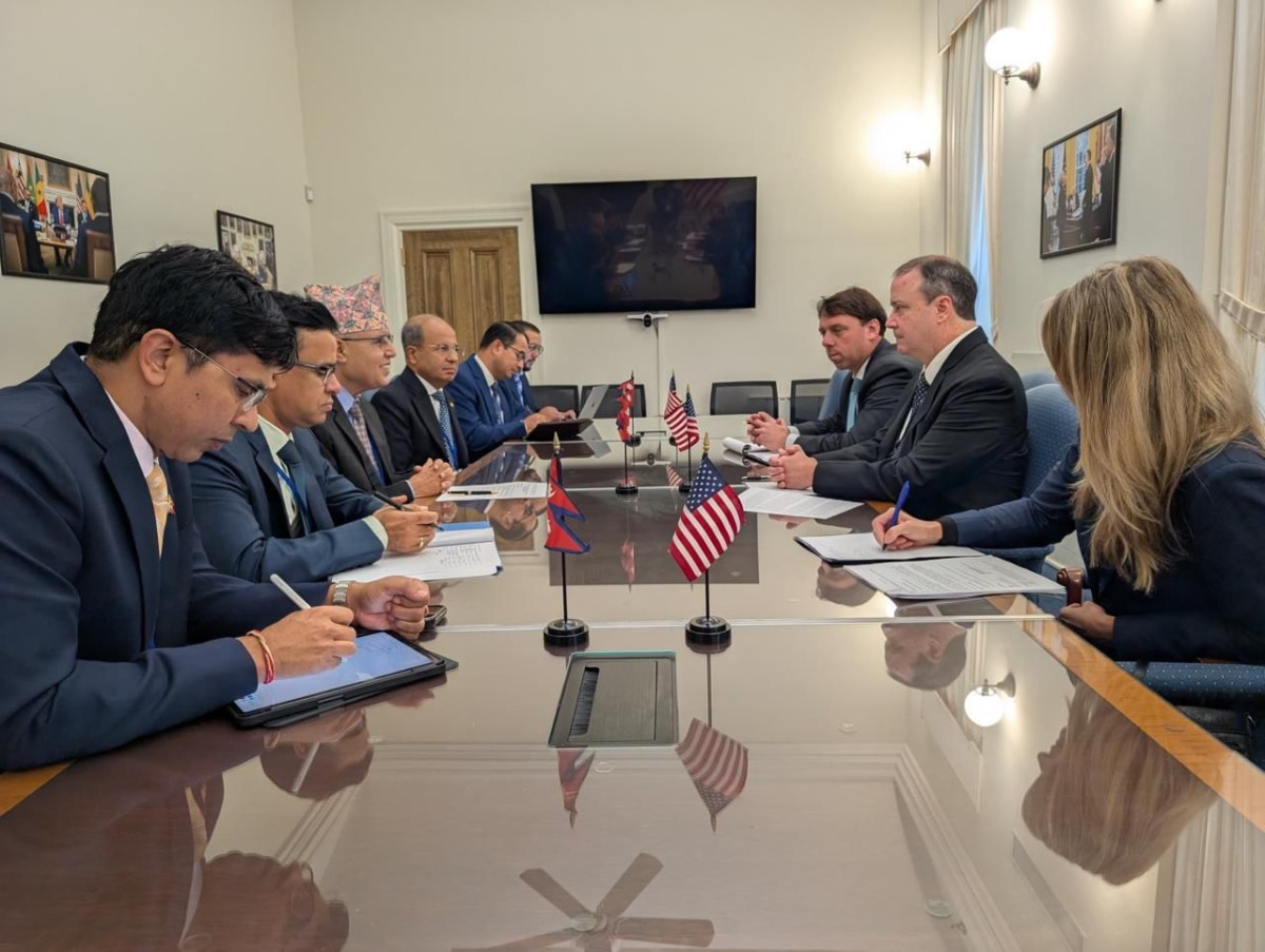 काठमाडौँ । अर्थमन्त्री रामेश्वरप्रसाद खनालले संयुक्त राज्य अमेरिकाको वासिङ्टन डि. सि. मा विभिन्न दातृ निकाय र अमेरिकी उच्च अधिकारीहरूसँग छुट्टाछुट्टै भेटवार्ता गर्नुभएको छ ।