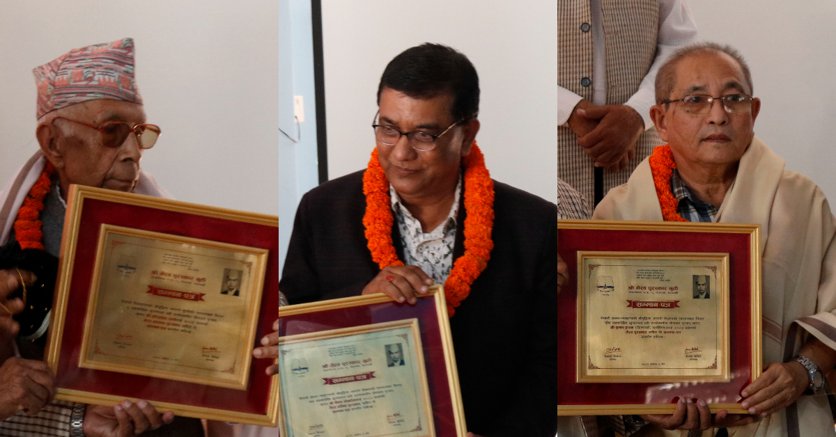 गुठीका अध्यक्ष रोचक घिमिरे, त्रिभुवन विश्वविद्यालयका उपकुलपति प्रा डा दीपक अर्याल, गोकर्णेश्वर नगरपालिकाका प्रमुख दीपक रिसाललगायतले पुरस्कार प्रदान गर्नुभएको हो ।