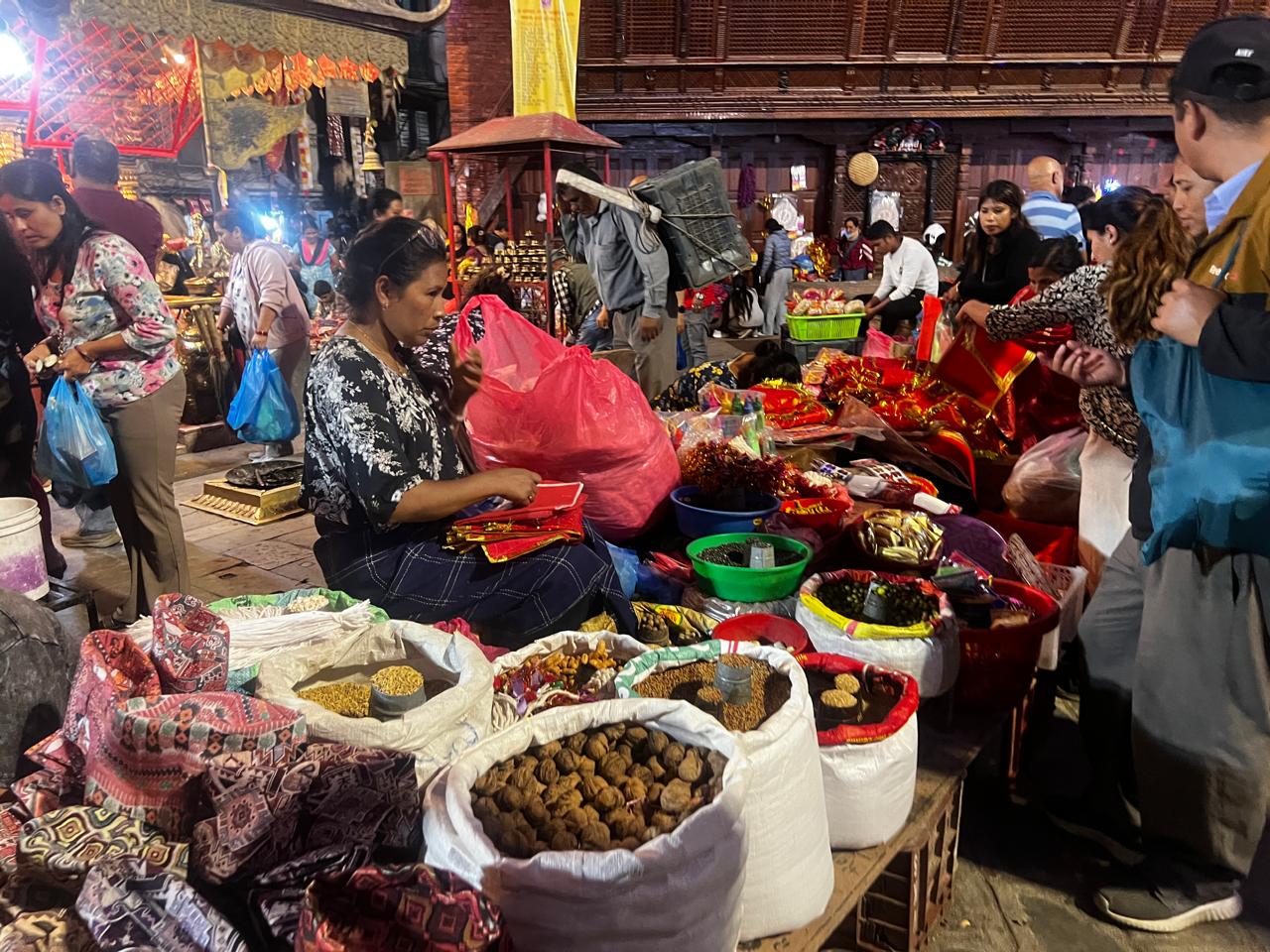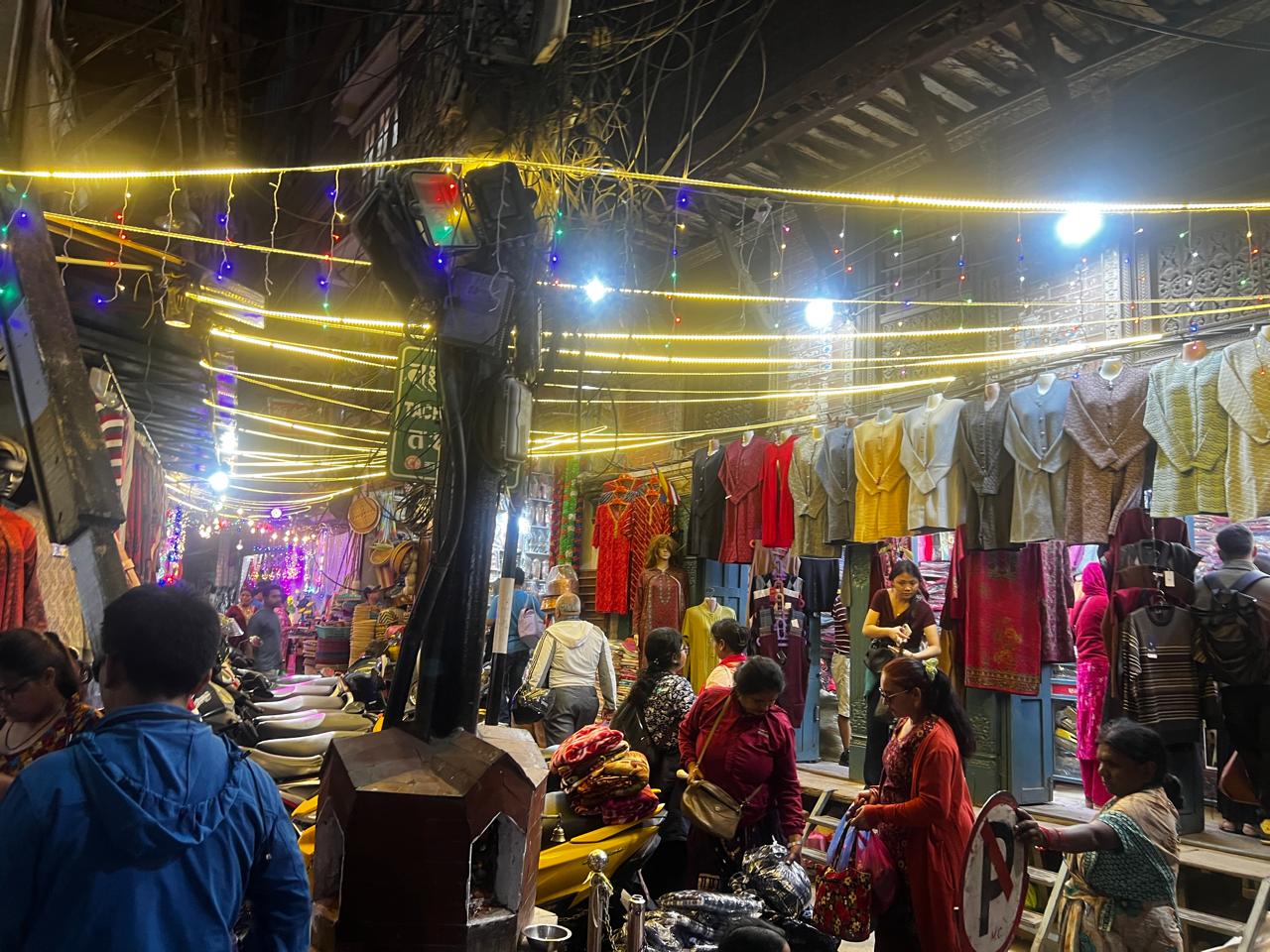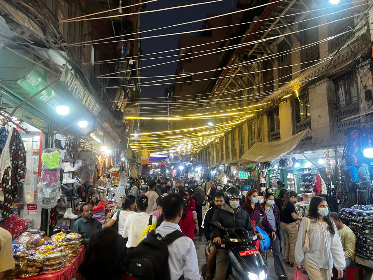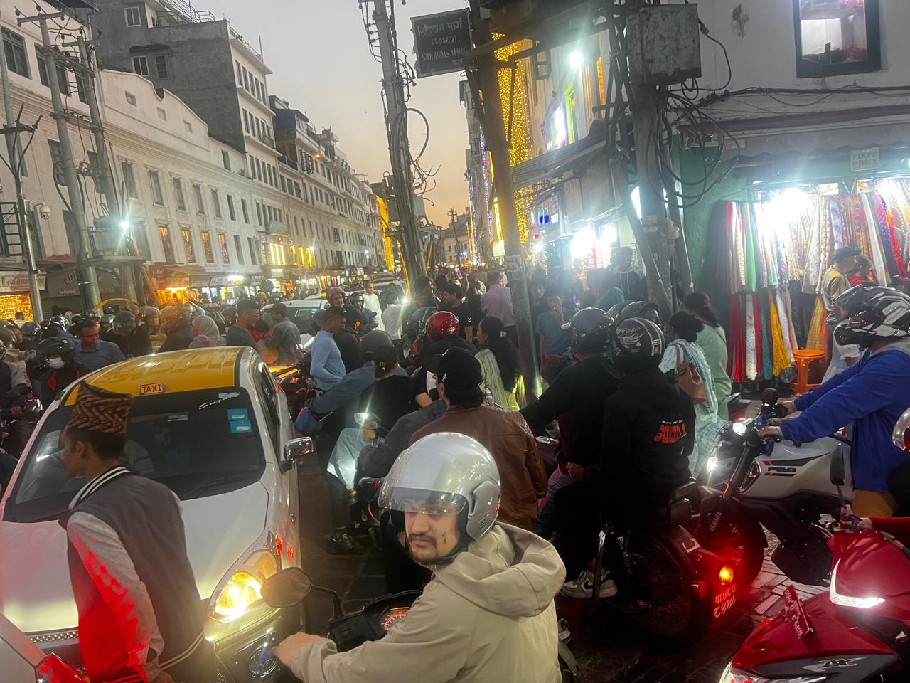काठमाडौंको मुख्य बजार असन, इन्द्रचोक, मख्खन चोकमा अझ बढी चहलपहल देख्न सकिन्छ । तिहारका लागि चाहिने सामान किन्नेदेखि बजार हेर्न आउने मानिसको भीड छ ।
