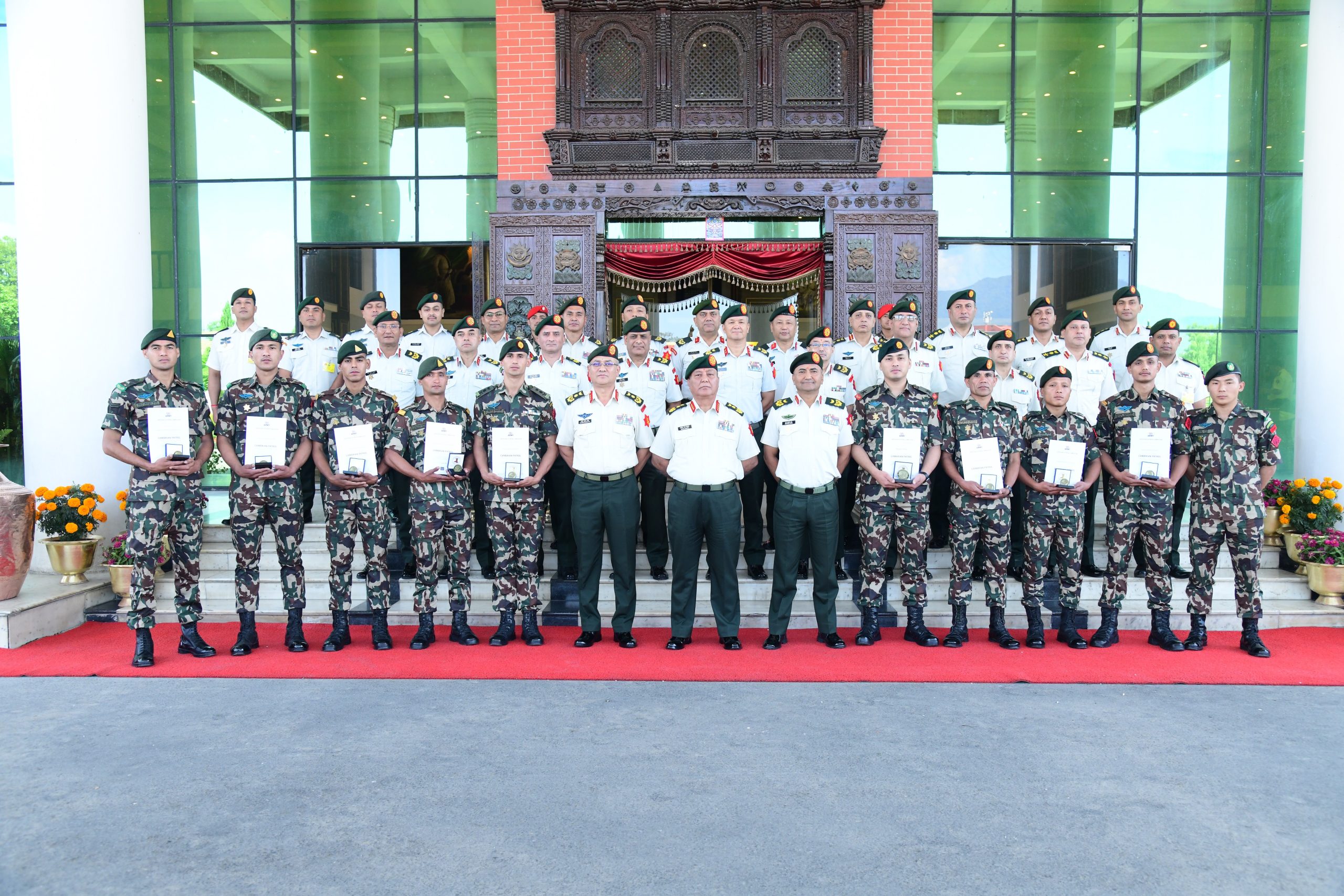 अन्तरराष्ट्रिय स्तरको सैनिक प्रतियोगितामा उत्कृष्ट नतिजा ल्याई नेपाल र नेपाली सेनाको छवि एवं गौरव बढाउन पु¥याएको योगदानको उच्च मूल्याङ्कन स्वरूप सहभागी नौ जना प्रतियोगी र एक जना व्यवस्थापकलाई प्रशंसा निशानद्वारा सम्मान गरिएको हो ।