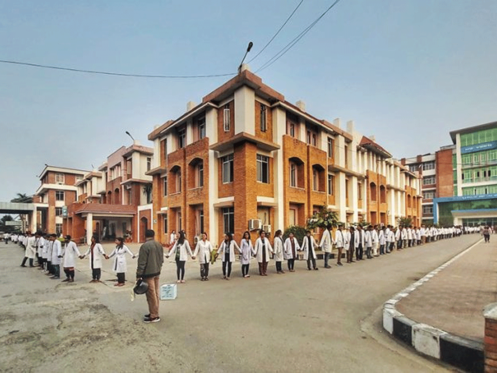 यस कलेजमा कार्यरत नर्सिङ तथा प्यारामेडिक्स कर्मचारीले प्रशासनसमक्ष विभिन्न माग राखी विसं २०८२ कात्तिक २ गतेदेखि आन्दोलनमा उत्रिएका छन् । उनीहरूले कात्तिक ११ गते मङ्गलबार दिउँसो १ बजेसम्म पनि माग सम्बोधन नभए पूर्ण रूपमा ‘पेनडाउन’ गर्न बाध्य हुने चेतावनी दिएका छन् । रासस