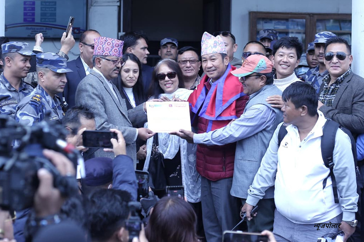 आइतबार मेयर साम्पाङले आयोगमा पुगेर पार्टीको मान्यताको प्रमाणपत्र लिएका हुन् ।