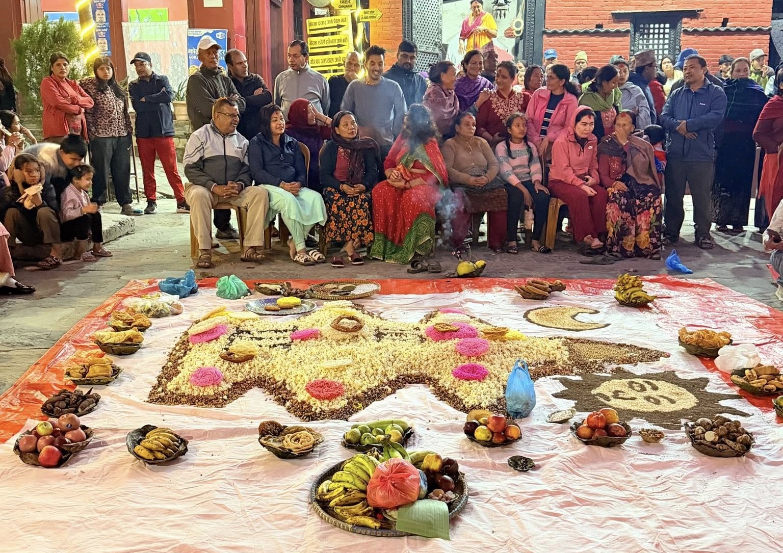ऐतिहासिक क्षेत्र संरक्षण तथा विकास समितिको आयोजनामा नेवारलगायतका समुदायले जुनको उज्यालोमा सामूहिकरुपमा मकै सुकाएर पर्व मनाएका हुन् ।
