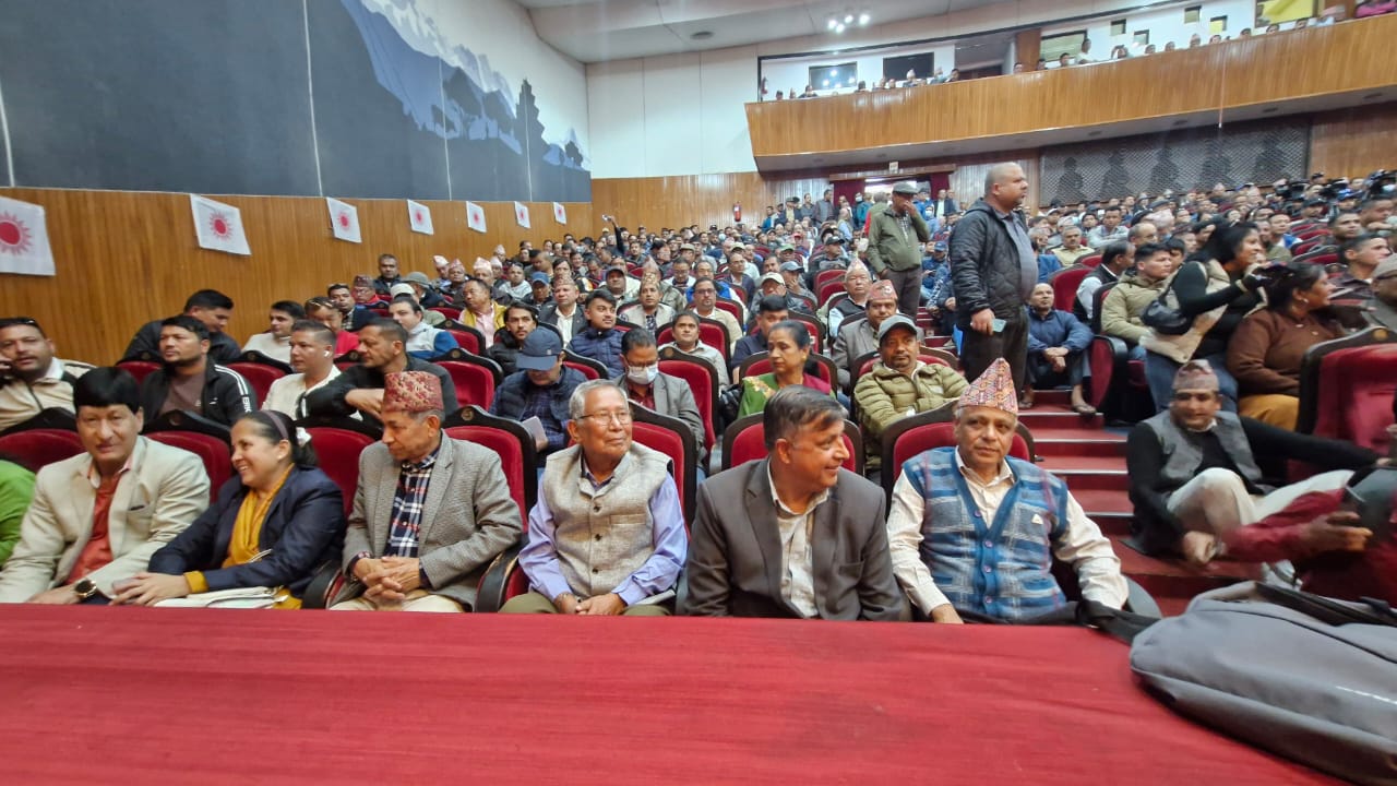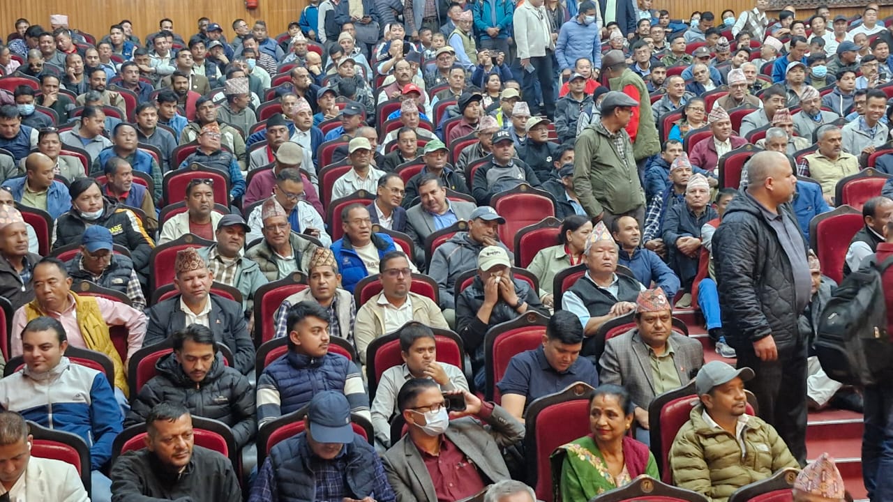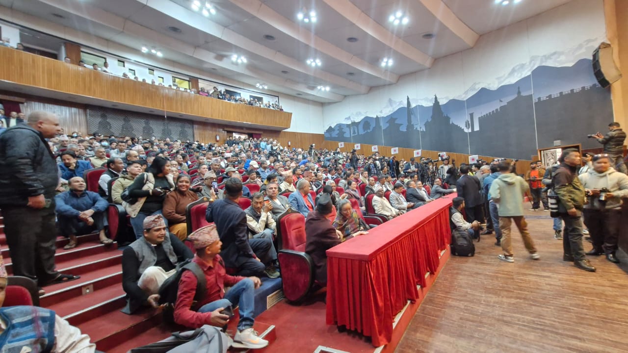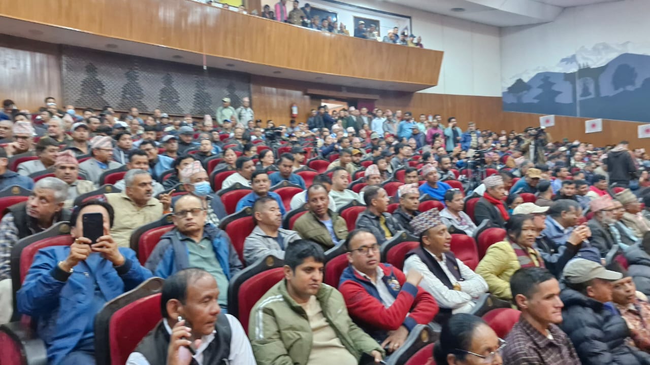 उनीहरूलाई अध्यक्ष केपी शर्मा ओलीले स्वागत गर्दैछन्। राष्ट्रिय सभागृहमा कार्यक्रम जारी छ।