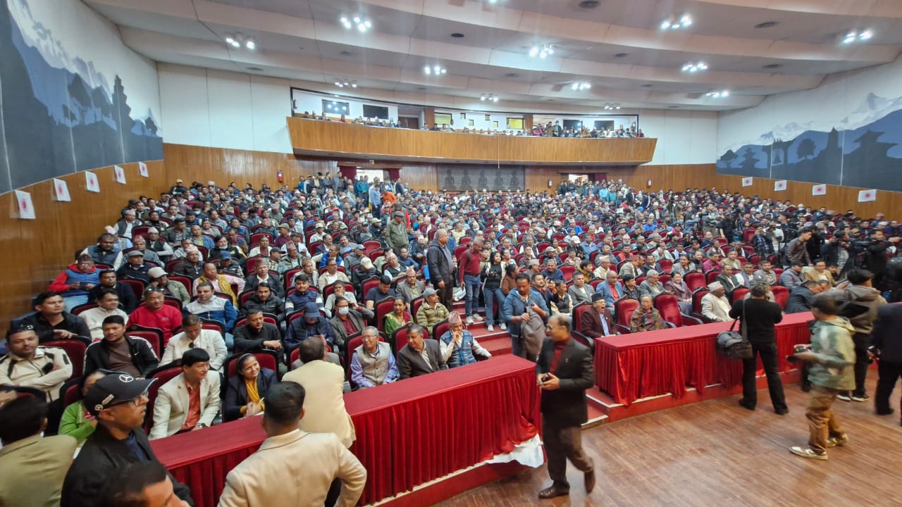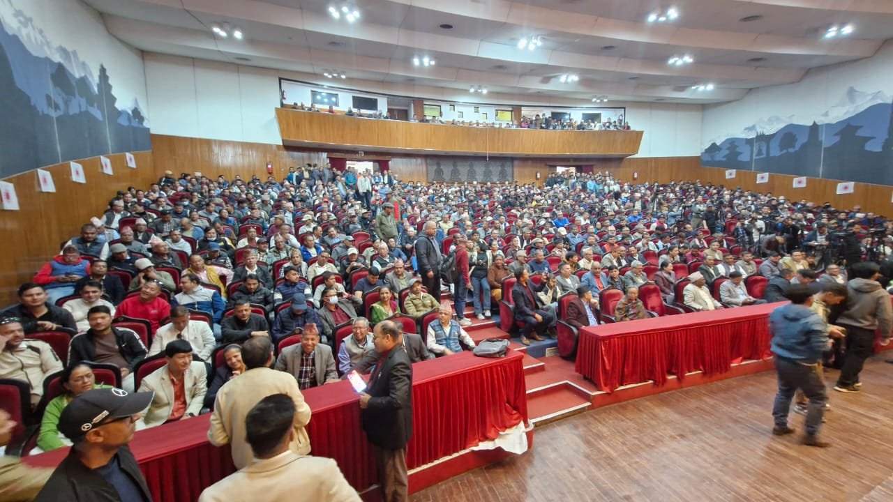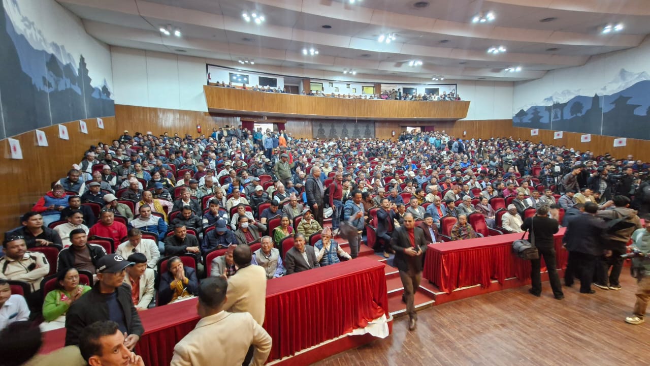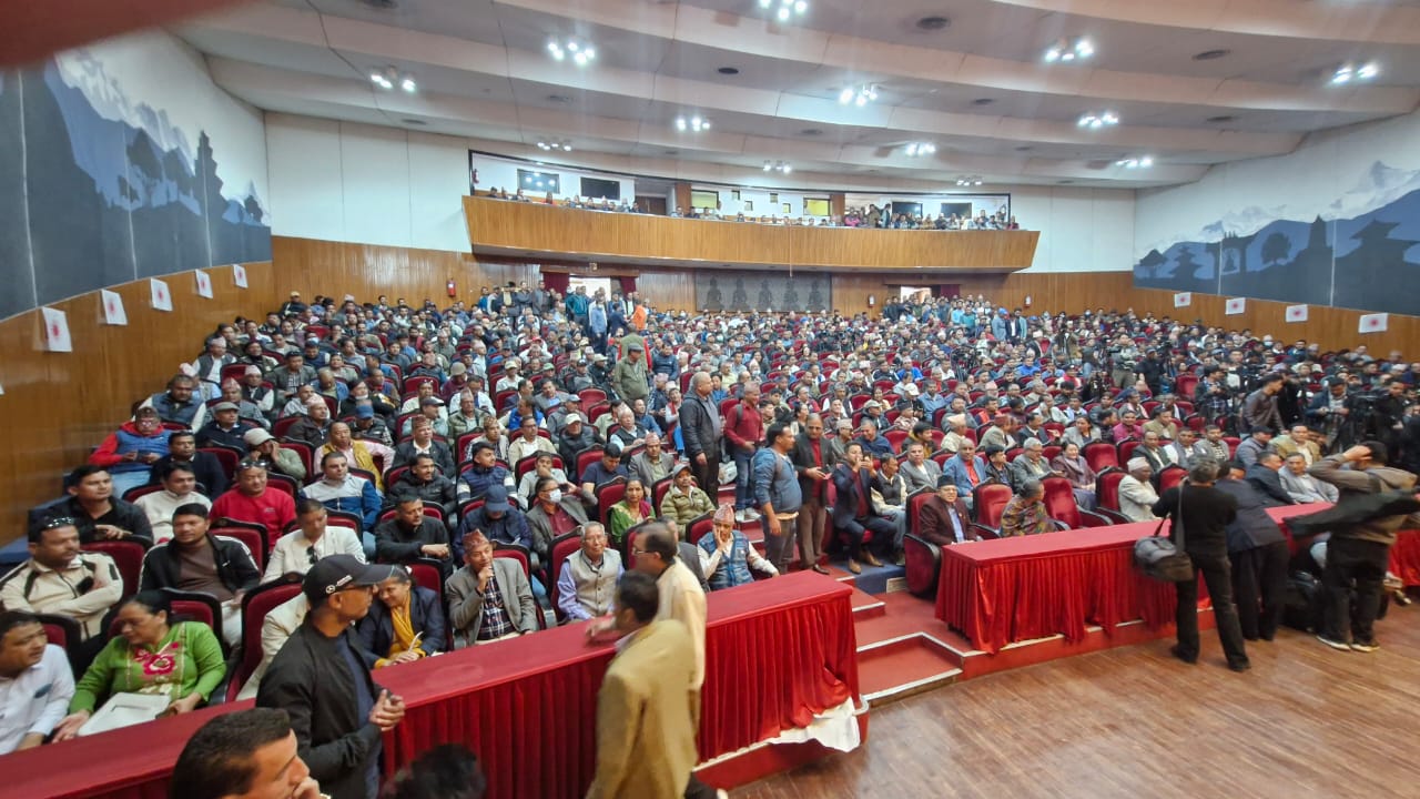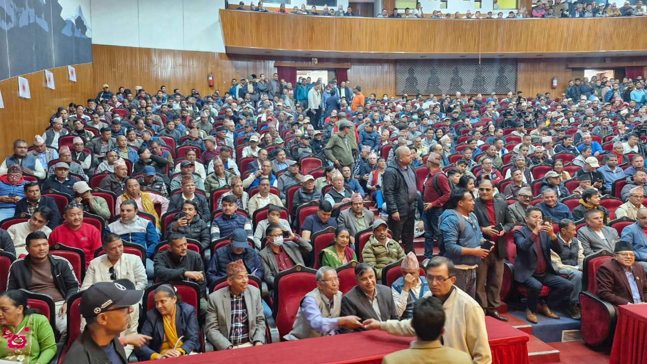 उनीहरूलाई अध्यक्ष केपी शर्मा ओलीले स्वागत गर्दैछन्। राष्ट्रिय सभागृहमा कार्यक्रम जारी छ।