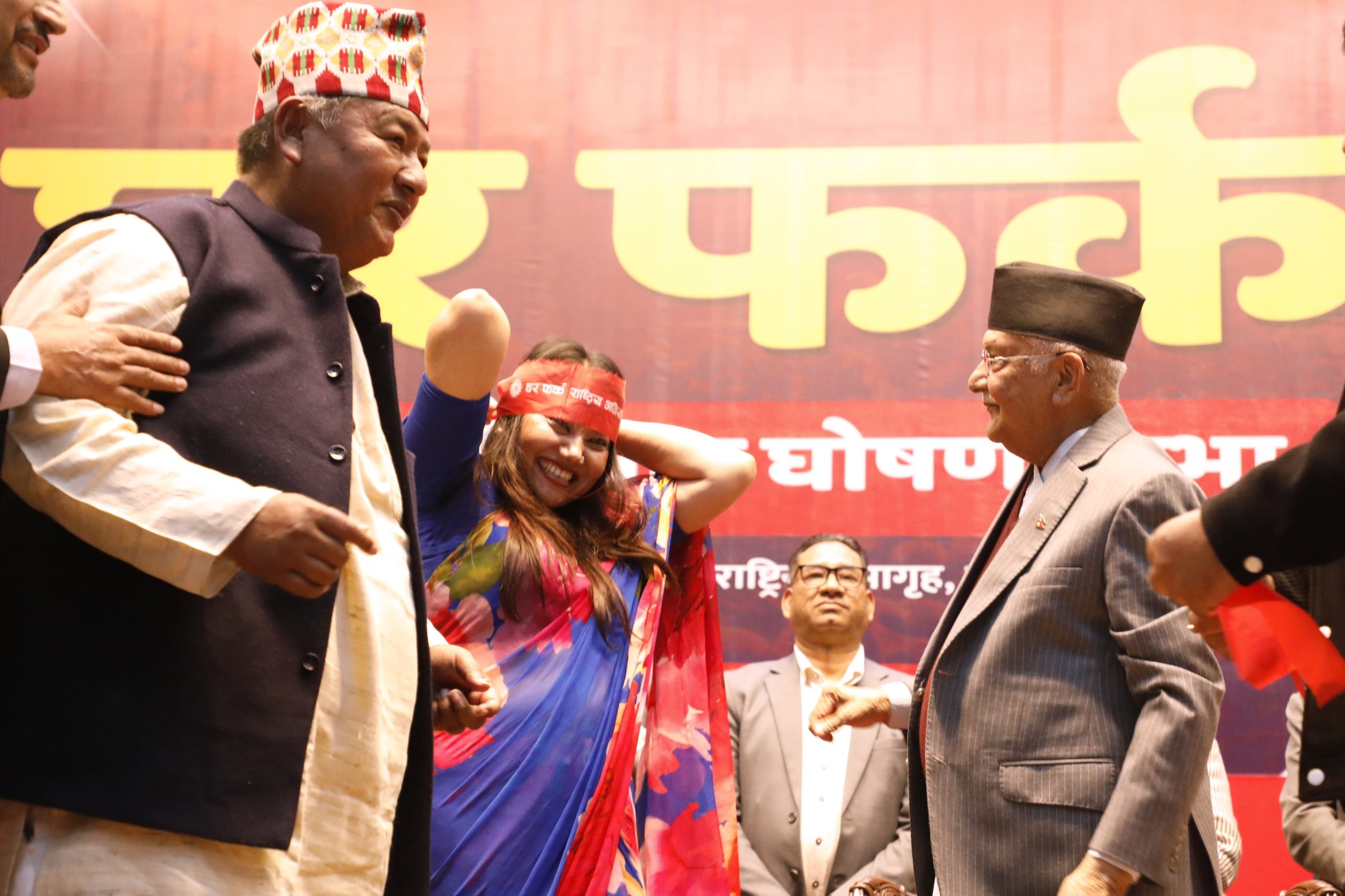 राष्ट्रिय सभा गृहमा आज आयोजित विशेष समारोहकाबीच एमाले अध्यक्ष केपी शर्मा ओलीले एकीकृत समाजवादीबाट फर्कनुभएका नेतृ रामकुमारी झाँक्री र नेता किसान श्रेष्ठलाई पार्टीको झण्डा प्रदान गर्दै घरमा स्वागत गर्नुभयो।