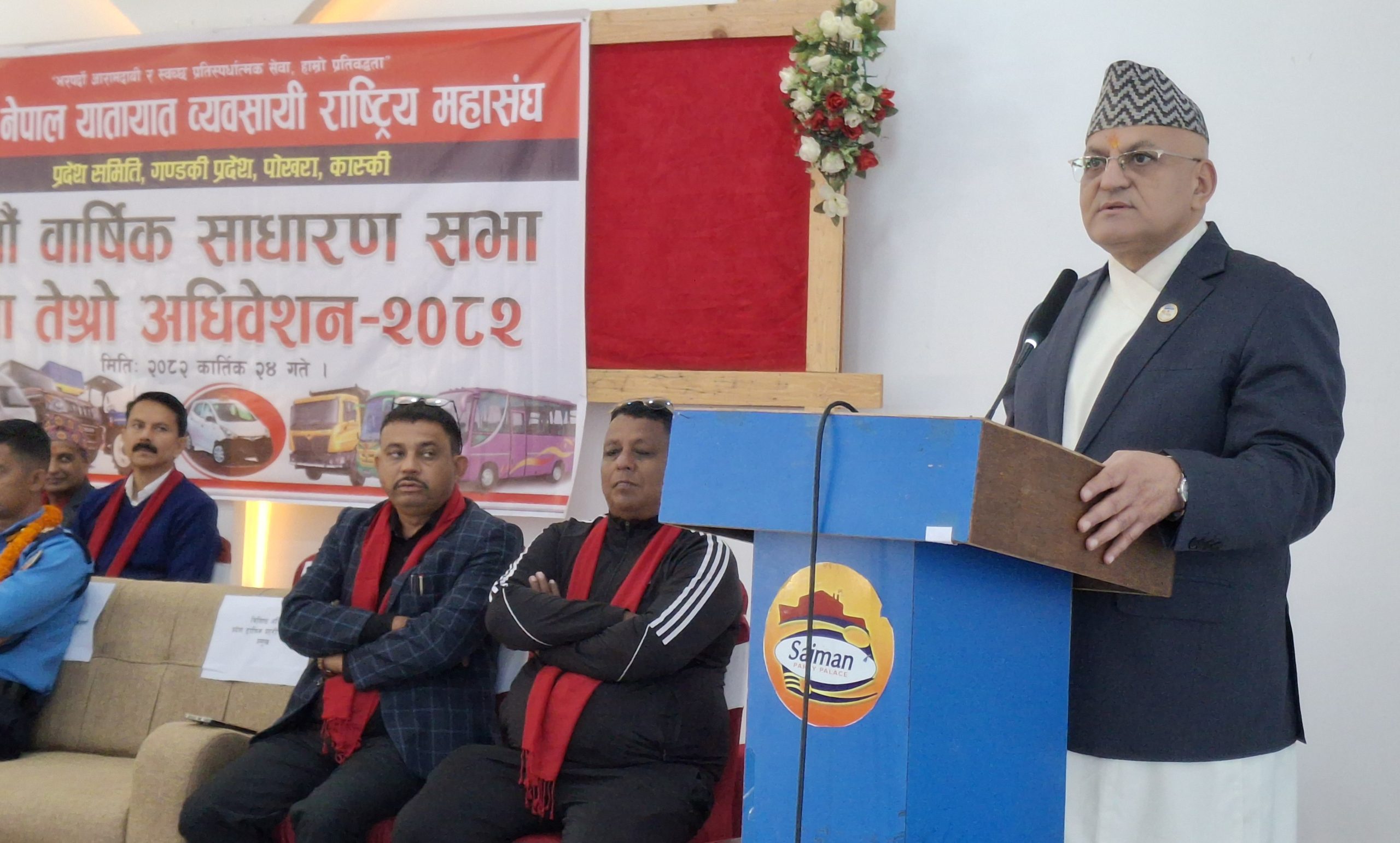 नेपाल यातायात व्यवसायी राष्ट्रिय महासङ्घ गण्डकी प्रदेशको सातौँ वार्षिक साधारणसभा तथा दोस्रो अधिवेशनको आज पोखरामा उद्घाटन गर्दै उहाँले जनताको चाहनाअनुसार यातायात सेवा पु¥याउन सबै पक्ष लाग्नुपर्नेमा जोड दिनुभयो ।