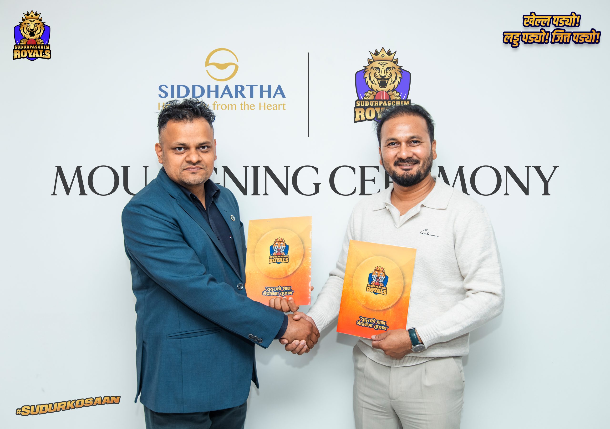 सुदूरपश्चिम रोयल्स र सिद्धार्थ बिजनेश ग्रुप अफ हस्पिटालिटीबीच शुक्रबार काठमाडौँमा सम्झौता भएको हो । सम्झौतापत्रमा सुदूरपश्चिम रोयल्सका प्रमुख कार्यकारी अधिकृत (सीईओ) प्रकाश खड्का र सिद्धार्थ बिजनेश ग्रुप अफ हस्पिटालिटीका निर्देशक दुर्गा पन्तले हस्ताक्षर गरे ।