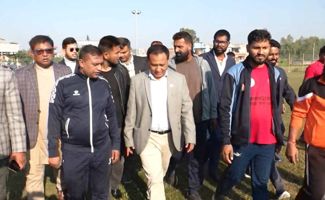 रंगशाला निरिक्षणको क्रममा मधेसको खेलकुद मन्त्रालयका सचिव रञ्जित यादव, जिल्ला क्रिकेट संघका पदाधिकारी, खेलाडीहरुले त्यहाँको वस्तुस्थितिको विषयमा जानकारी गराउनुभएको थियो ।