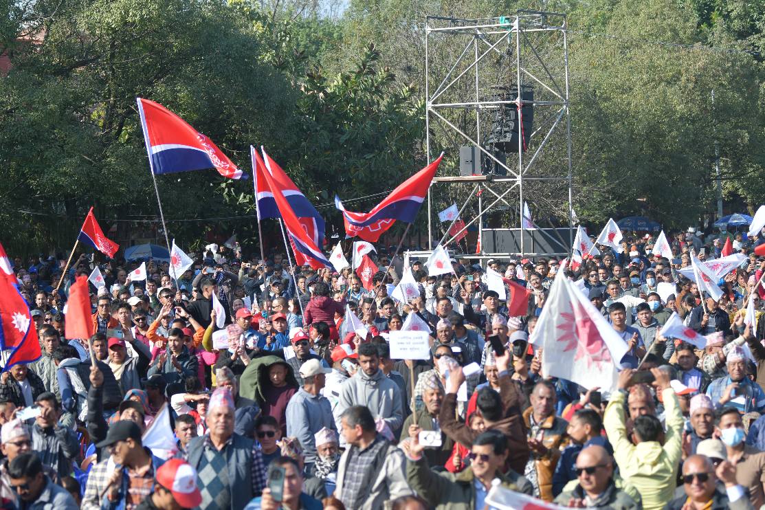 काठमाडौँ । नेपाल कम्युनिष्ट पार्टी (एमाले)ले आज राजधानीमा प्रदर्शन र र्याली आयोजना गरेको छ । काठमाडौँकेन्द्रित जनसभाका लागि आज भृकुटीमण्डप र आसपासका क्षेत्रमा एमालेले प्रदर्शन गरेको हो ।