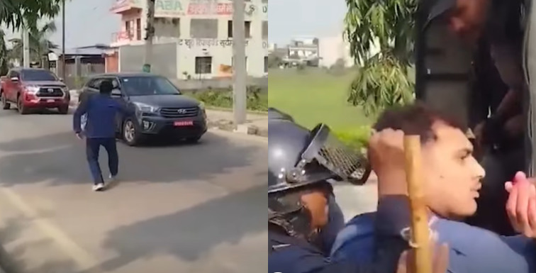 आज बिहान एयरपोर्ट लाइनतर्फको सडकमा प्रहरी भ्यानको पछाडि लागेको बस्नेत सवार कार गुडिरहेका बेला सडक किनाराबाट दौडदै आएका युवाले गाडीमा रातो मसी फ्याँकेका थिए।
