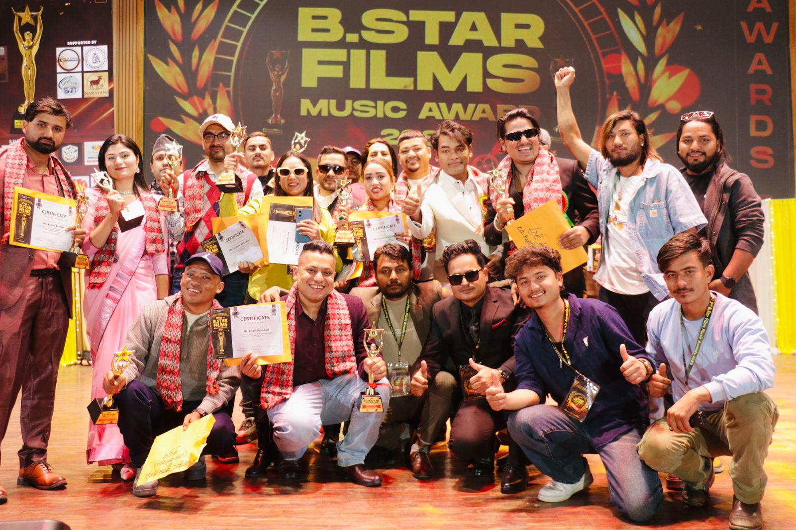 काठमाडौं । बि. स्टार फिल्मस प्रालि र दिनपरी क्रिएसन प्रालिको सहकार्यमा दोश्रोे बि। स्टार फिल्मस् म्युजिक अवार्ड २०८२ सम्पन्न भएको छ ।