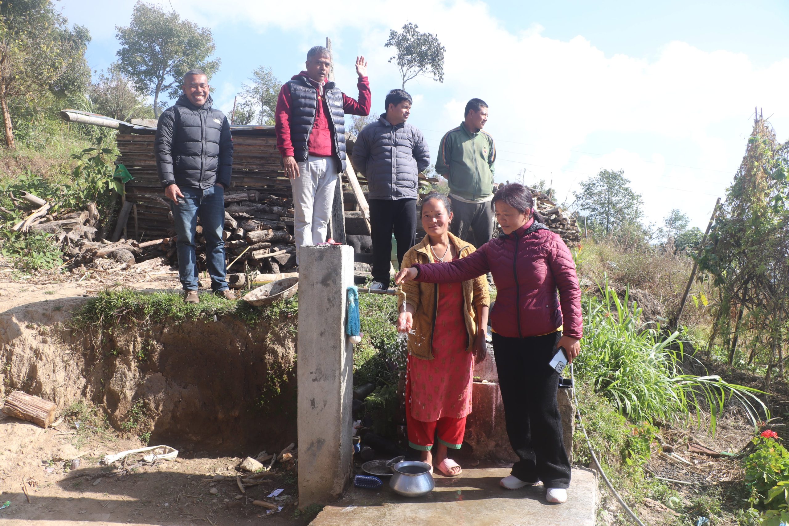 “यहाँका ३० परिवारको घरमा धारा जडान गर्न सफल भएका छौँ”, उहाँले भन्नुभयो, “हाम्रो गाउँपालिकाको अन्य वडामा पानीको निकै ठूलो समस्या छ । ठूला योजना सञ्चालनसँगै यहाँका मुहानको संरक्षण गरेर स्थानीयको घरघरमा धारा पुर्‍याउने लक्ष्यका साथ काम गरिरहेका छौँ ।