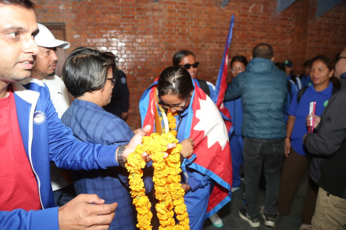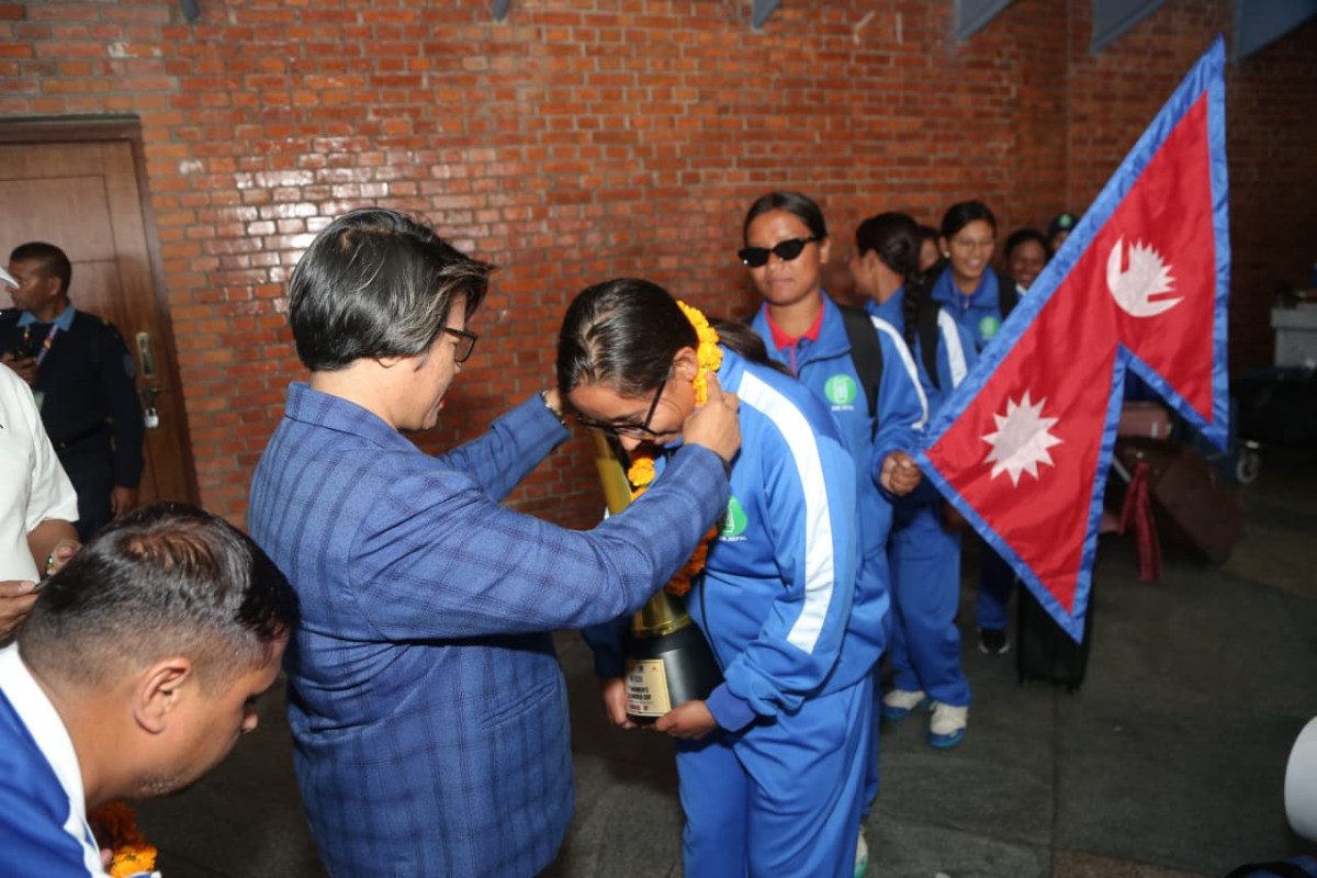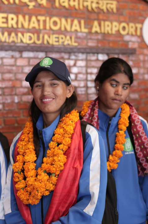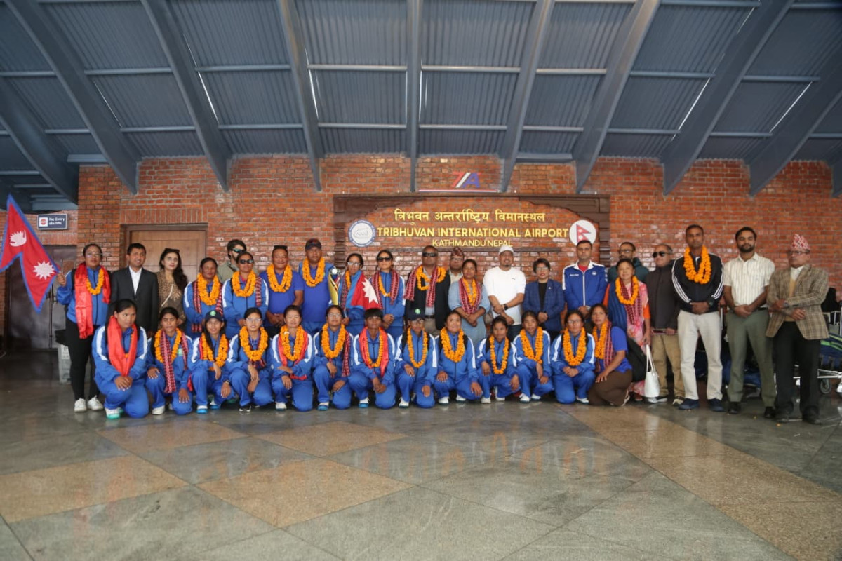 काठमाडौँ ।  श्रीलंका र भारतमा संयुक्त रूपमा आयोजना भएको नेत्रहीन महिला टी ट्वान्टी विश्वकपको पहिलो संस्करणमा उपविजेता बनेको नेपाली महिला टोली स्वदेश फर्किएको छ । टोलीलाई नेपाल क्रिकेट संघ (क्यान) का पदाधिकारीहरुले त्रिभूवन अन्त्र्राष्ट्रिय विमानस्थलमा स्वागत गरे । श्रीलंकाको राजधानी कोलम्बोमा आईतवार सम्पन्न फाइनलमा भारतसँग सात विकेटले पराजित भएको थियो ।