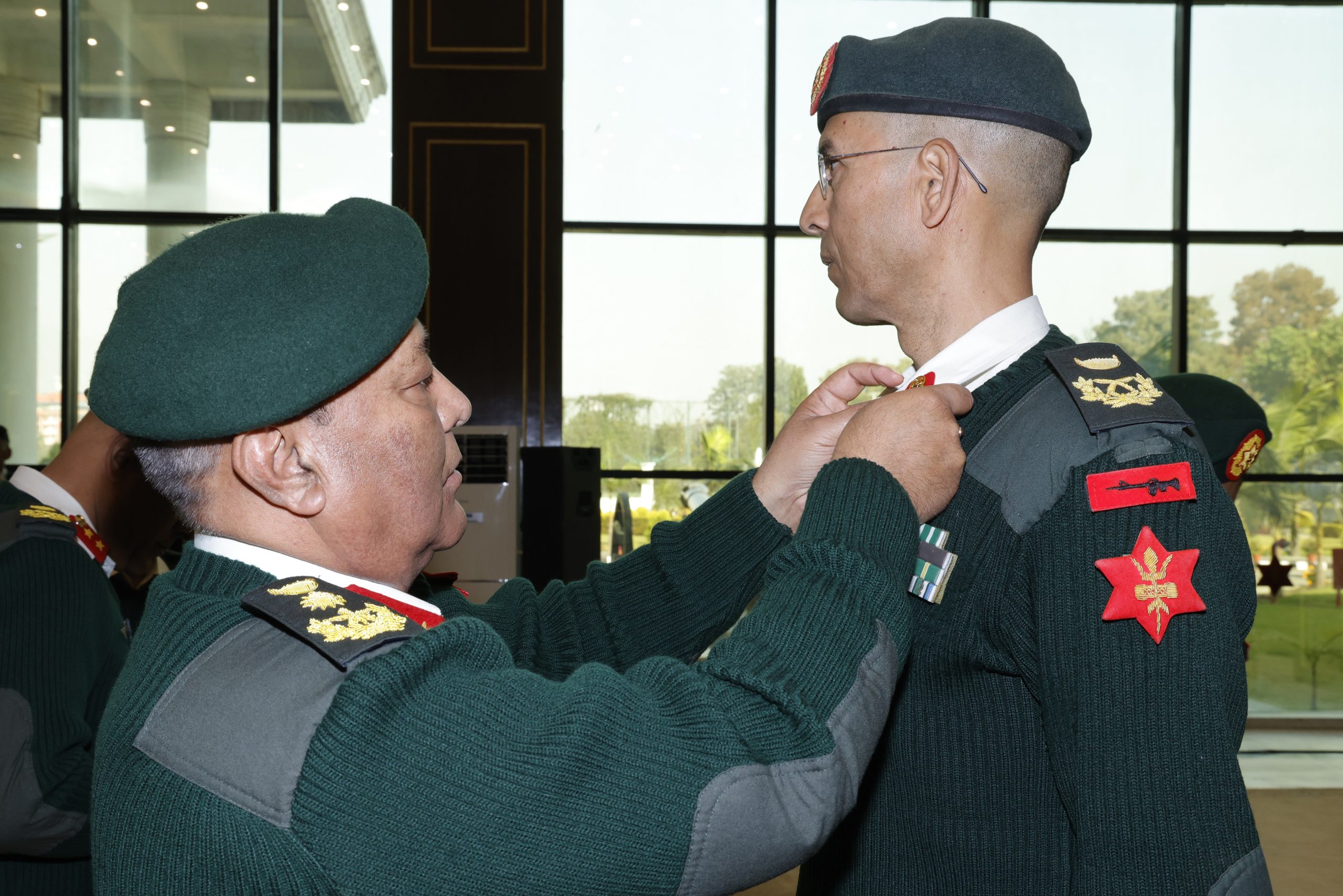 काठमाडौँ । मन्त्रिपरिषद्को यही मङ्सिर ५ गतेको निर्णयअनुसार उपरथीमा विशेष बढुवा पाउनुभएका सहायक रथी कृष्णप्रसाद भण्डारीलाई प्रधान सेनापति अशोकराज सिग्देलले आज जङ्गी अड्डामा आयोजित एक कार्यक्रममा उपरथी दर्जाको दर्ज्यानी चिह्न प्रदान गर्नुभएको छ ।