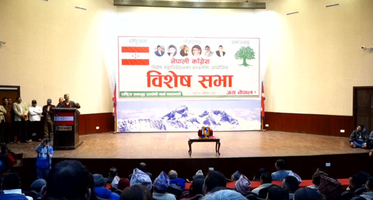 काठमाडौं । नेपाली कांग्रेसमा विशेष महाधिवेशन पक्षधरको भेला राष्ट्रिय सभागृहमा सुरु भएको छ । भोलि बस्ने केन्द्रीय समितिलाई दबाब दिनको लागि आज भेला राखेको हो।