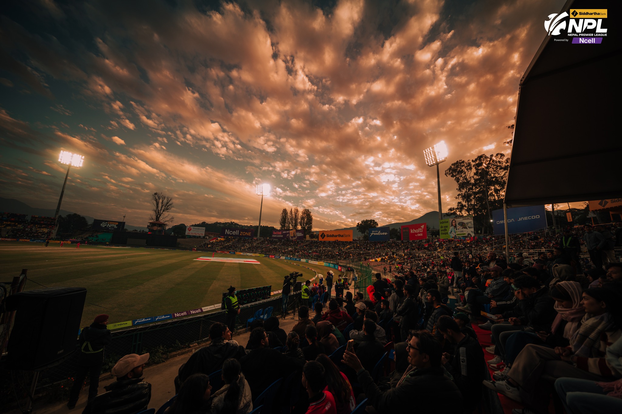 खचाखच दर्शकले भरिएको मैदानमा फ्लडलाइटको उज्यालोमा आकाश पनि रंगिन देखिँदा एनपीएल थप मनमोहक देखिन पुग्यो । यसैपनि विश्वको ध्यान खिचिरहेको एनपीएलमा आजको दृश्यले थप आकर्षण मिलेको छ ।