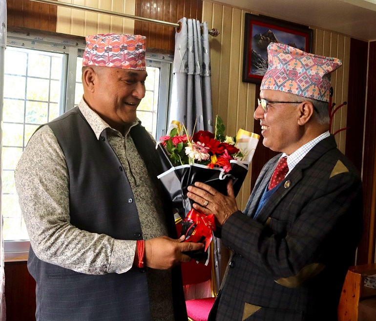 कैलाली । सुदूरपश्चिम प्रदेशका मुख्यमन्त्री कमलबहादुर शाह र नेपाल सरकारका अर्थमन्त्री रामेश्वर खनालबीच आज धनगढीस्थित मुख्यमन्त्री तथा मन्त्रिपरिषद्को कार्यालयमा भेटवार्ता भएको छ ।