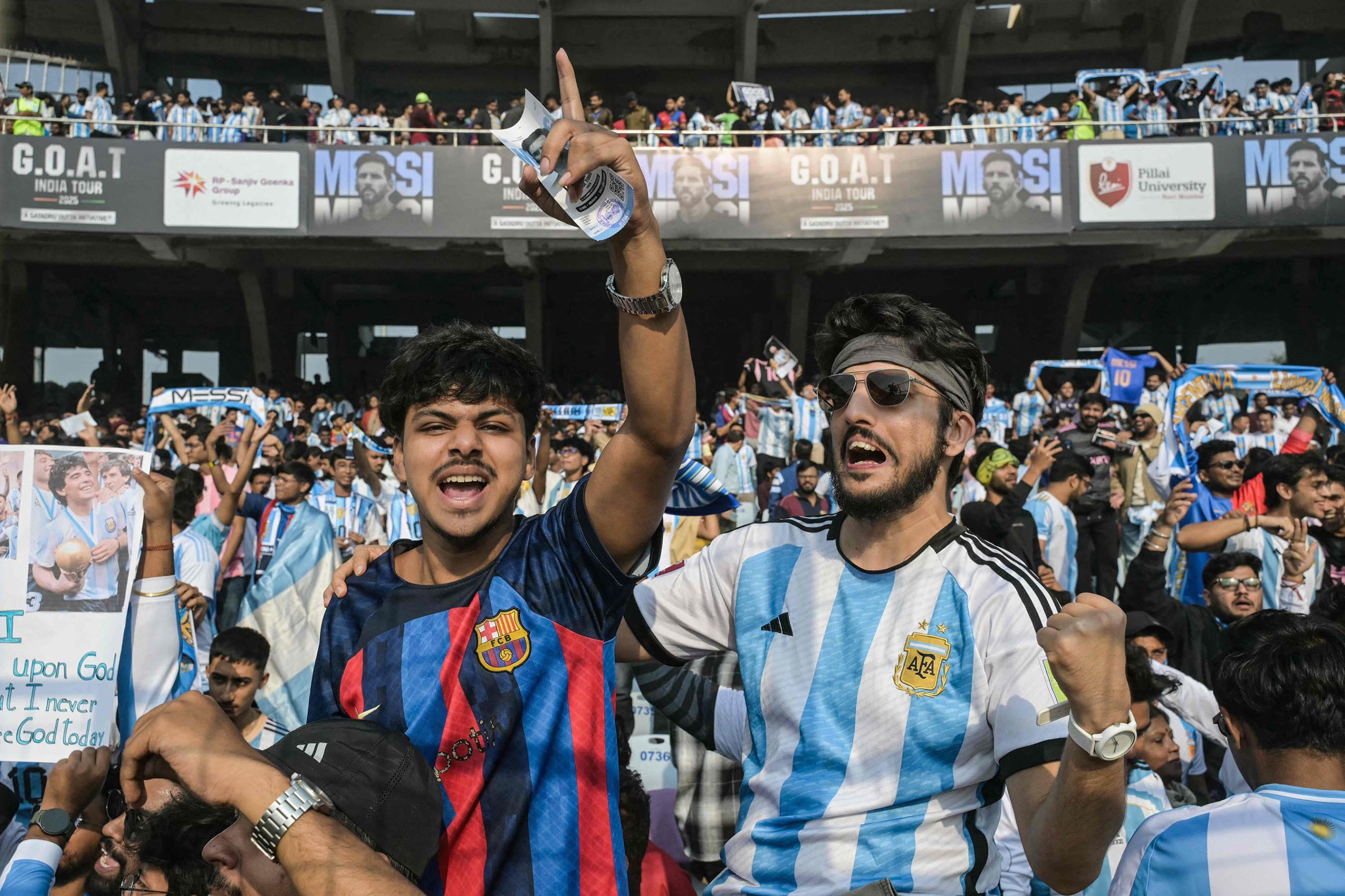 दिउँसो १२ः४० बजेः मेसी चाँडै निस्किएकोमा आक्रोशित समर्थकहरूले स्टेडियममा बोतल र कुर्सी फ्याँक्न थाले।