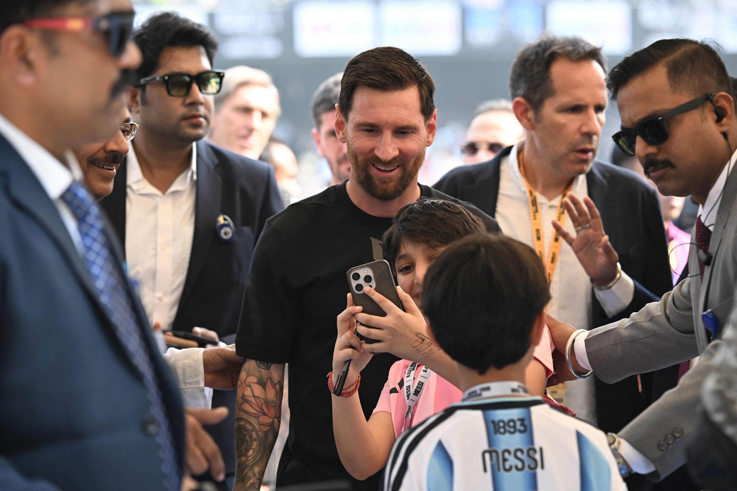 बिहान ११ः०५ बजेः मेसी बलिउड अभिनेता शाहरुख खान र उनका छोरा अबरारसँग भेट गरे।