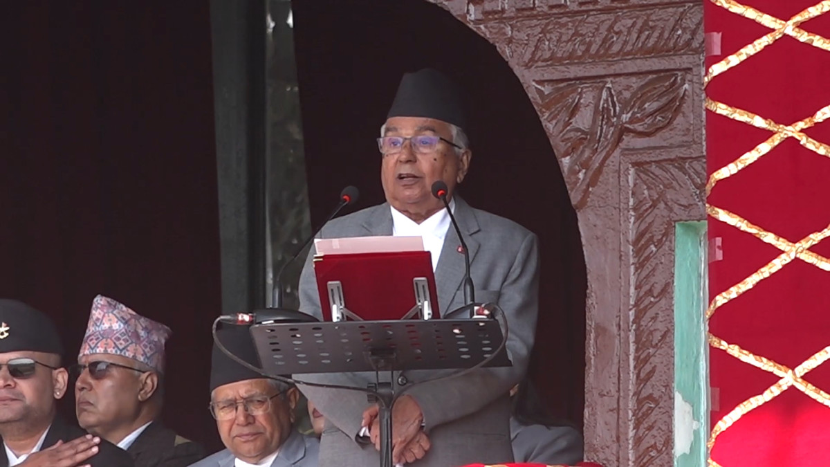 राष्ट्रपति पौडेलले भन्नुभयो, ‘मुलुकसामु विद्यमान समस्यालाई निकास दिनका लागि जनताको अभिमत लिने विषय लोकतन्त्रको सबैभन्दा उच्चतम विधि हो, त्यही भएर युवा पुस्ताले चाहेको परिवर्तनको चाहनालाई मुर्तरुप दिन आगामी फागुन २१ गते प्रतिनिधिसभा सदस्यको निर्वाचन हुँदैछ, यसलाई सफल पारेर अघि बढौँ र सामाजिक न्यायसहित सुशासनका माध्यमबाट समृद्ध नेपाल निर्माणको अभियानमा सहभागी बनौं भन्ने अपिल पनि म यस अवसरमा गर्दछु सङ्घीय लोकतान्त्रिक गणतन्त्रमा जनताले सुम्पिएको जिम्मेवारीलाई अन्तस्करणबाटै बोध गर्दै सबै मिलेर देश विकासमा समर्पित होऔँ, इतिहासबाट अनुभव, पाठ र शिक्षा लिएर वर्तमानको चाहना र आवश्यकता सम्बोधन गरी भावी सन्ततिलाई समृद्ध नेपाल सुम्पन्ने दायित्व हाम्रो काँधमा छ, यो दायित्व पूरा गर्नबाट हामी चुक्न हुँदैन भन्ने म ठान्दछु, त्यसका लागि नविन सोच, शैली र योजना तथा त्यसलाई पूरा गर्न दृढ अठोट, उर्जासहित आचरणशील र चरित्रवान नेतृत्वको खाँचो छ ।’