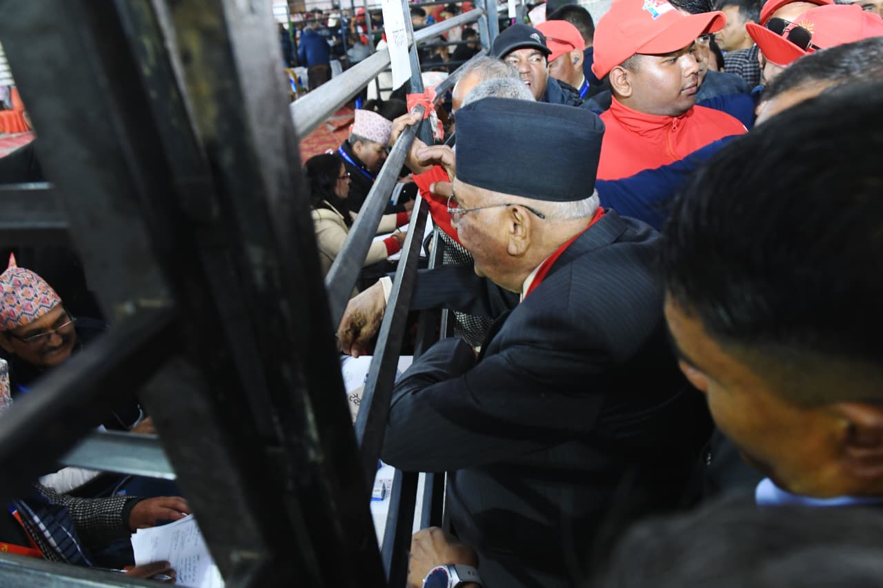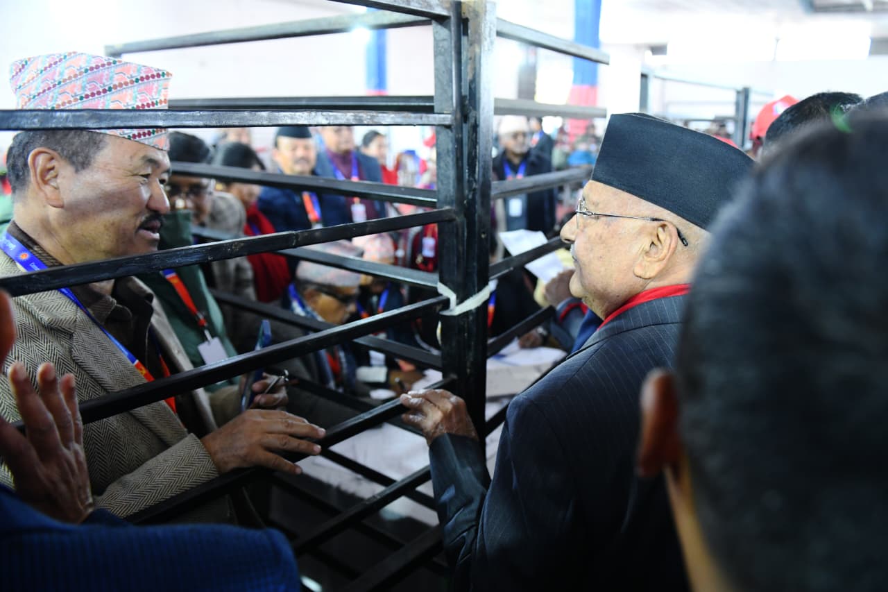 भृकुटीमण्डपमा एमाले नेतृत्व चयनको प्रक्रिया अघि बढिरहेको छ । यसैबीच ओली तेस्रोपटक प्रतिस्पर्धामा उत्रिएका हुन् ।