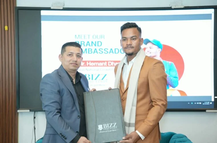 काठमाडौँ। क्रिकेट खेलाडी हेमन्त धामीलाई ‘बिज एजुकेशन’ले ब्रान्ड एम्बासडरका रूपमा अनुबन्ध गरेको छ। उनलाई तीन वर्षका लागि ब्रान्ड एम्बासडरका रूपमा अनुबन्ध गरिएको हो।